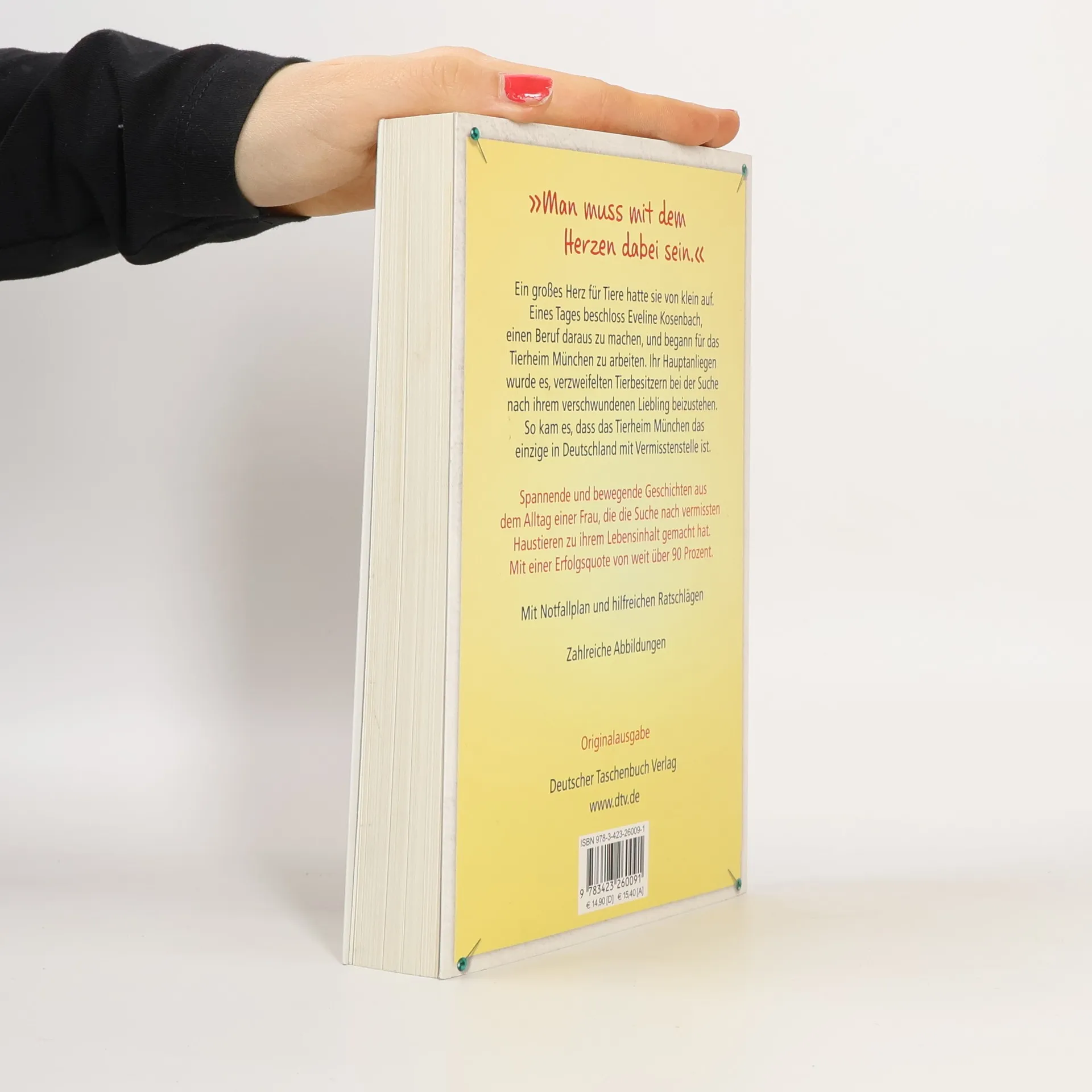 »Ein Hund ist ein Herz auf vier Pfoten.« Ein großes Herz für Tiere hatte sie von klein auf. Eines Tages beschloss sie, daraus einen Beruf zu machen. Sie begann für das Tierheim München zu arbeiten und machte die Suche nach vermissten Tieren zu ihrem Hauptanliegen. So kam es, dass das Tierheim München das einzige in Deutschland mit Vermisstenstelle ist. Mit einer Erfolgsquote von über 90 Prozent. Allein im Raum München verschwinden jährlich fast 4.000 Hunde und Katzen. Manche natürlich für immer. Aber wer sich bei Eveline Kosenbach meldet, kann sicher sein, dass sie alle Hebel in Bewegung setzt, einschließlich zahlreicher ehrenamtlicher Helfer, des Internets und der Social Media. Sie weiß, wie Tiere sich verhalten, und hat ihre eigenen, fast kriminalistischen Methoden entwickelt, um verschwundene wieder ausfindig zu machen. Oft kann sie also verzweifelte Tierbesitzer glücklich machen.