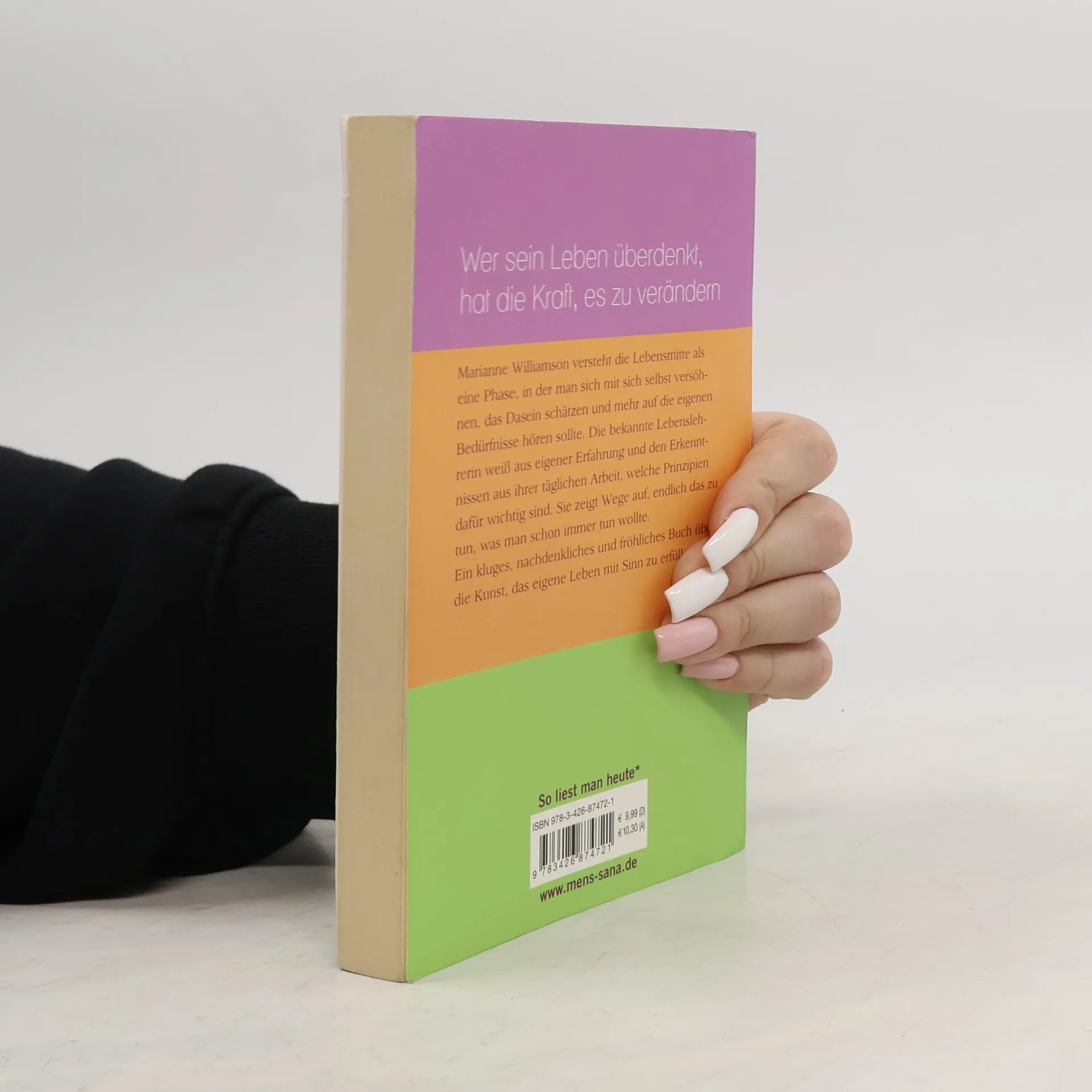 Marianne Williamson, die bekannte spirituelle Lehrerin, versteht die Lebensmitte als eine Phase, in der man sich selbst versöhnen, seinen Visionen folgen und mehr auf die eigenen Bedürfnisse hören sollte. Sie weiß aus eigener Erfahrung und Erlebnissen in ihrer täglichen Arbeit, welche Prinzipien dafür wichtig sind. Und sie zeigt Wege auf, endlich so zu leben, wie man es schon immer tun wollte.