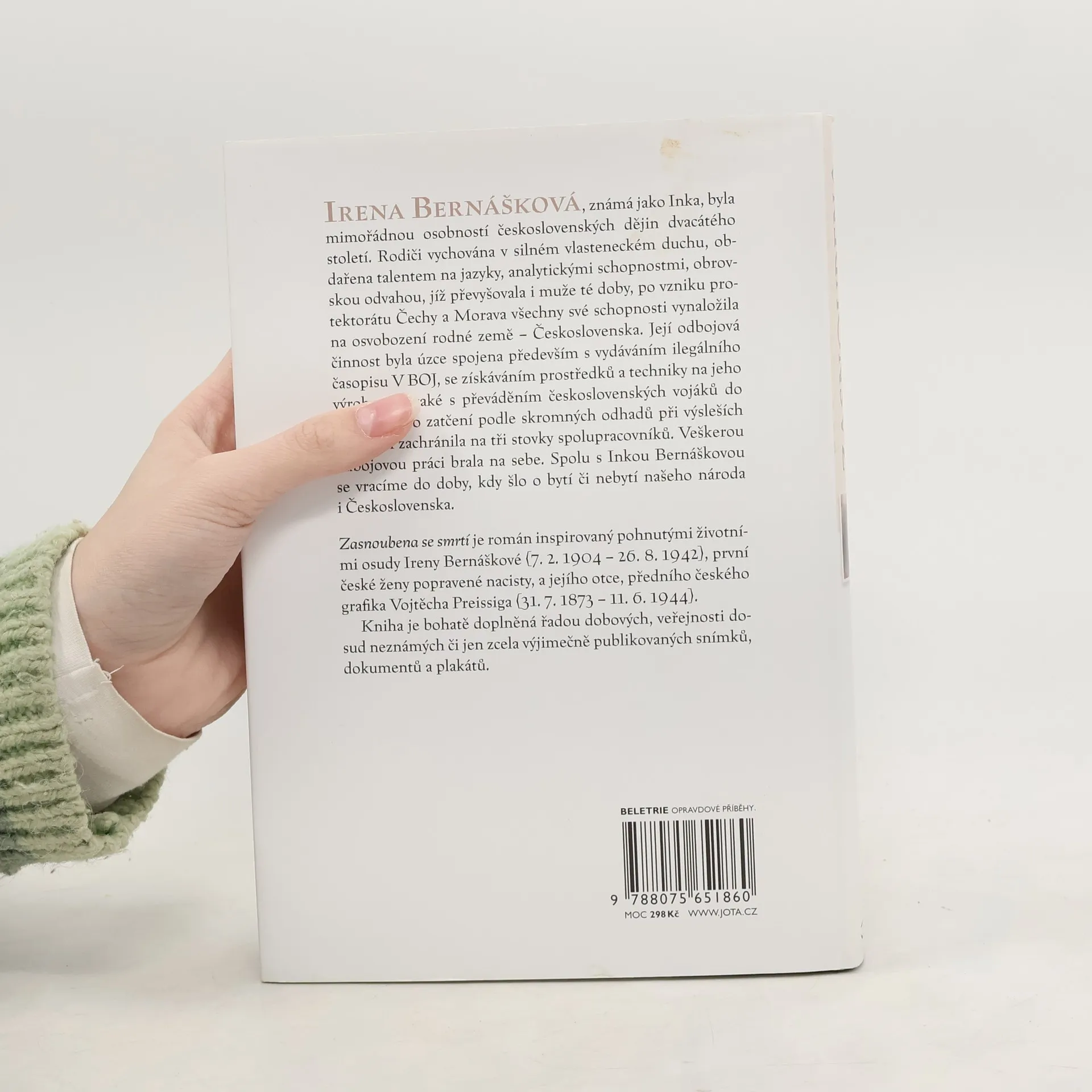 Řadou dobových, dosud veřejnosti neznámých či jen zcela výjimečně publikovaných snímků, dokumentů a plakátů bohatě doplněná publikace Zasnoubena se smrtí z pera novinářky, spisovatelky a překladatelky Jany Vrzalové, je inspirována pohnutými životními osudy první české ženy popravené nacisty Ireny Bernáškové (7. 2. 1904 – 26. 8. 1942) a jejího otce, předního českého grafika Vojtěcha Preissiga (31. 7. 1873 – 11. 6. 1944). Irena Bernášková, známá jako Inka, byla mimořádnou osobností dvacátého století. Rodiči vychována v silném vlasteneckém duchu, obdařena talentem na jazyky, analytickými schopnostmi, obrovskou odvahou, jíž převyšovala i muže té doby, po vzniku protektorátu Čechy a Morava všechny své schopnosti vynaložila na osvobození rodné země – Československa. Její odbojová činnost byla úzce spojena především s vydáváním ilegálního časopisu V BOJ, se získáváním prostředků a techniky na jeho výrobu, ale také s převáděním československých vojáků do zahraničí. Po zatčení podle skromných odhadů při výsleších mlčením zachránila na tři stovky spolupracovníků. Veškerou odbojovou práci brala na sebe. Spolu s Inkou Bernáškovou se vracíme do doby, kdy šlo o bytí či nebytí našeho národa i Československa. Knížka, která je zhmotněním paměti o naší minulosti v té nejtragičtější podobě, je prolnutím literatury faktu s beletrií.