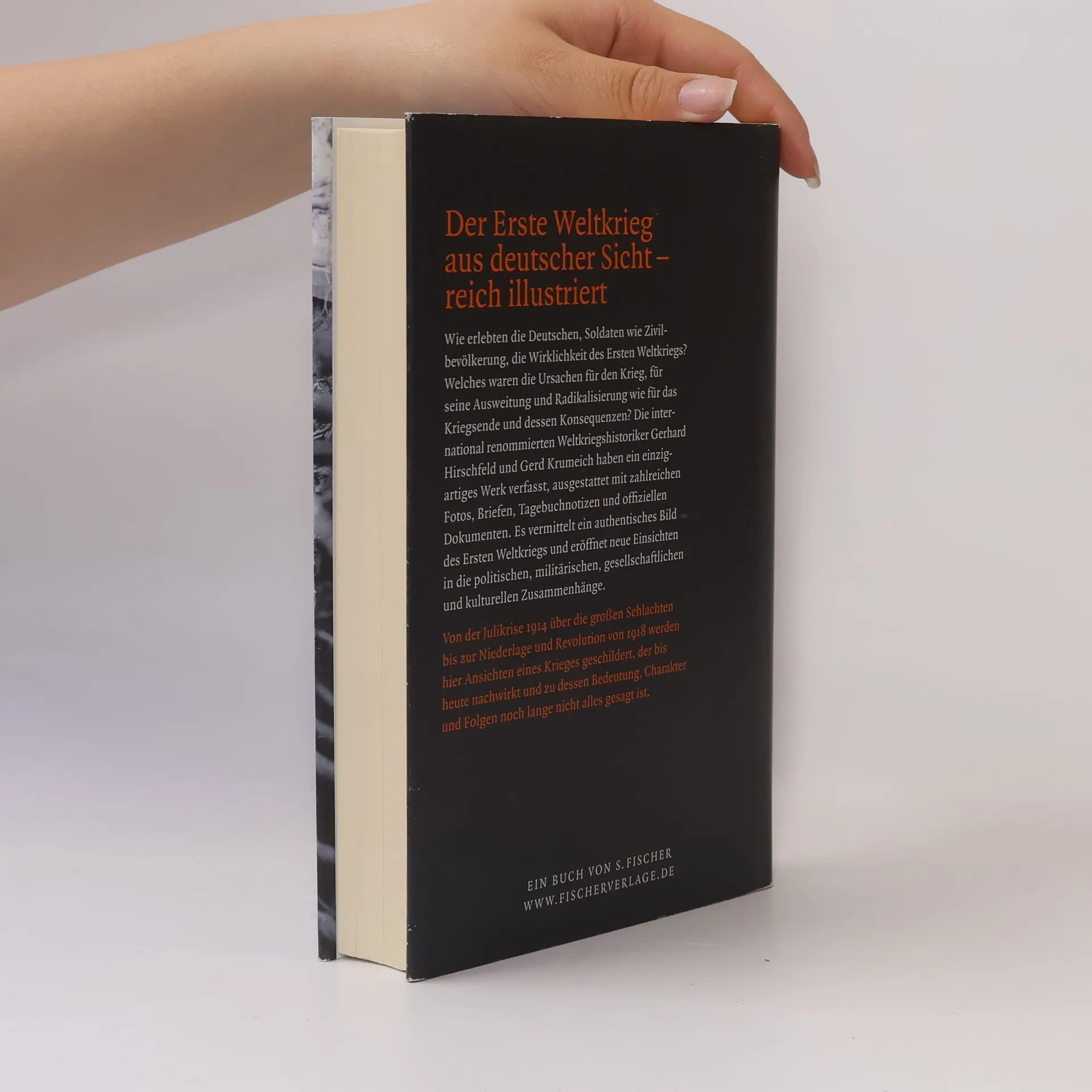 Das Standardwerk zum Ersten Weltkrieg (1914-1918) mit zahlreichen Abbildungen, Dokumenten und Selbstzeugnissen Wie erlebten die Menschen, Soldaten wie Daheimgebliebene, die Wirklichkeit des Ersten Weltkriegs? Welches waren die Ursachen für den Krieg und für seine Ausweitung und Radikalisierung? Die beiden renommierten Weltkriegshistoriker Gerhard Hirschfeld und Gerd Krumeich haben ein einzigartiges Werk verfasst, in dessen Mittelpunkt zahlreiche Briefe, Tagebuchnotizen, offizielle Dokumente und Zeitzeugenberichte stehen. Dadurch vermitteln Sie ein authentisches Bild des Ersten Weltkriegs und neue Einsichten in die politischen, militärischen, gesellschaftlichen und kulturellen Ereignisse. Von der Julikrise über die großen Schlachten bis zur Niederlage und Revolution, von der »Heimatfront« bis zu Propaganda und Kriegswirtschaft stellen sie alle Aspekte des Krieges dar – ein Krieg, der bis heute nachwirkt und zu dessen Bedeutung, Charakter und Folgen noch lange nicht alles gesagt ist.