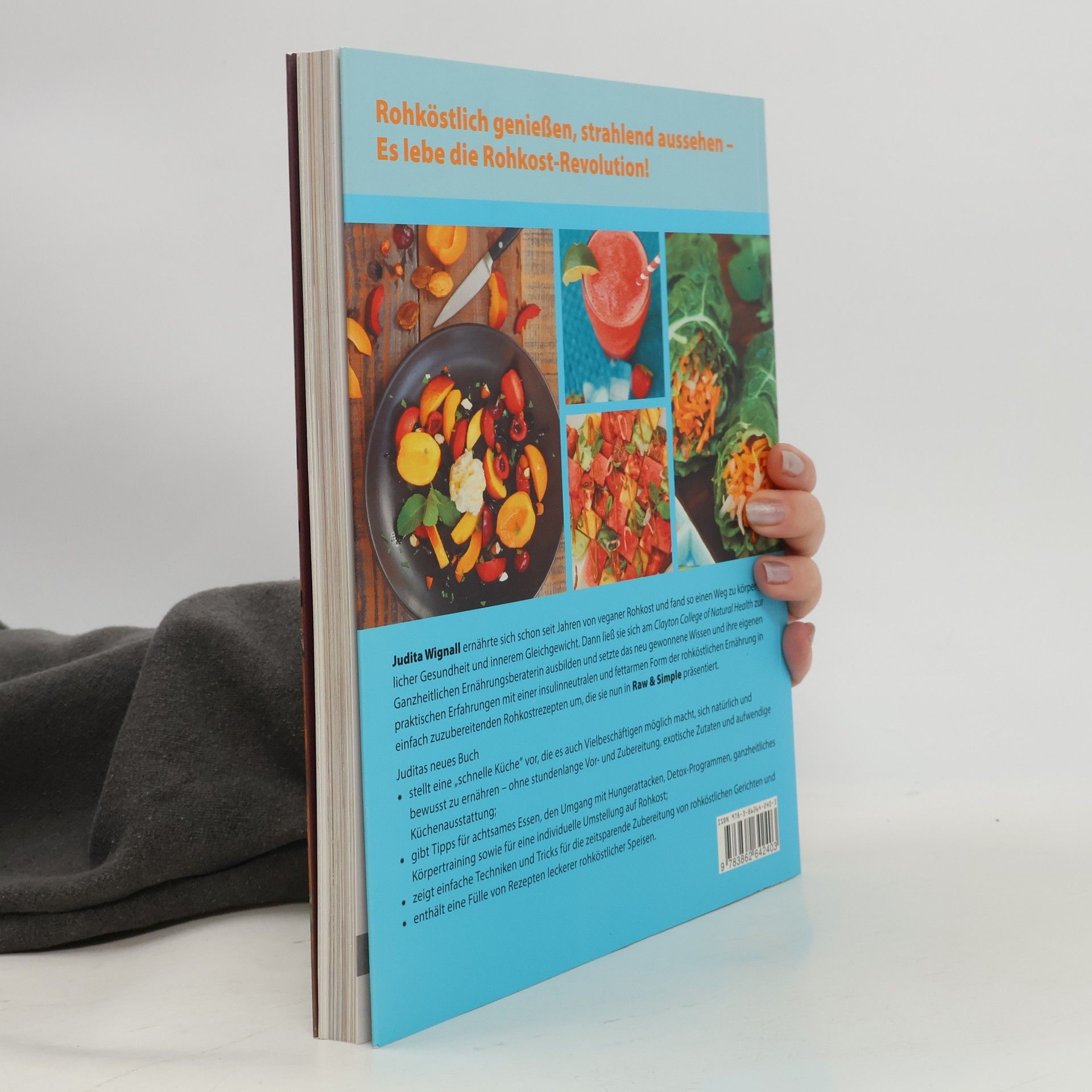 Rohköstlich genießen, strahlend aussehen – Es lebe die Rohkost-Revolution!. Judita Wignall ernährte sich schon seit Jahren von veganer Rohkost und fand so einen Weg zu körperlicher Gesundheit und innerem Gleichgewicht. Dann ließ sie sich am Clayton College of Natural Health zur Ganzheitlichen Ernährungsberaterin ausbilden und setzte das neu gewonnene Wissen und ihre eigenen praktischen Erfahrungen mit einer insulinneutralen und fettarmen Form der rohköstlichen Ernährung in einfach zuzubereitenden Rohkostrezepten um, die sie nun in Raw & Simple präsentiert. Juditas neues Buch stellt eine „schnelle Küche“ vor, die es auch Vielbeschäftigen möglich macht, sich natürlich und bewusst zu ernähren – ohne stundenlange Vor- und Zubereitung, exotische Zutaten und aufwendige Küchenausstattung; gibt Tipps für achtsames Essen, den Umgang mit Hungerattacken, Detox-Programmen, ganzheitliches Körpertraining sowie für eine individuelle Umstellung auf Rohkost; zeigt einfache Techniken und Tricks für die zeitsparende Zubereitung von rohköstlichen Gerichten und enthält eine Fülle von Rezepten leckerer rohköstlicher Speisen.