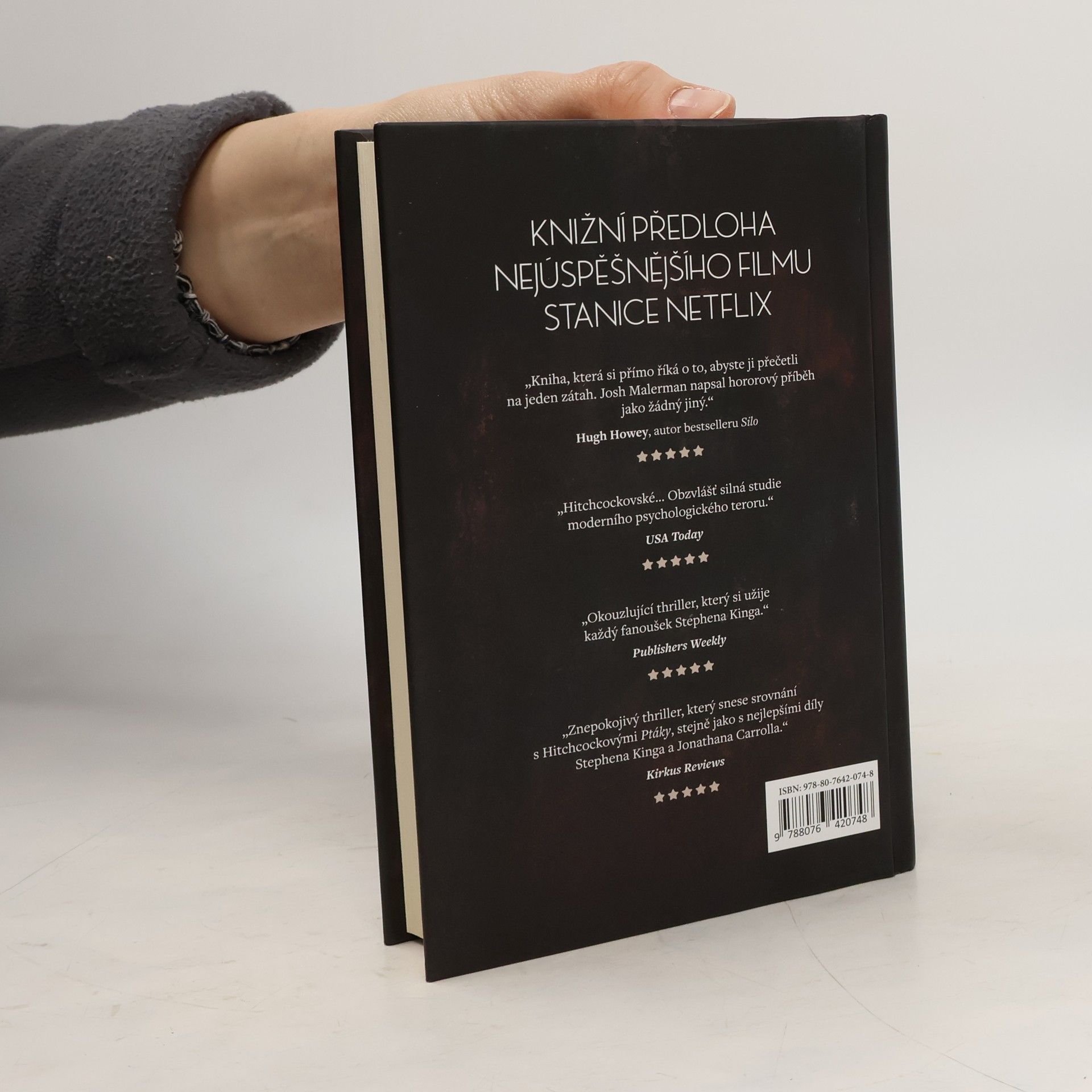 Malorie sleduje silnici před sebou. Snaží se dojet do bezpečí. Nesmí se rozhlédnout. Jediný pohled by ji mohl stát život. Tam venku totiž žijí prazvláštní tvorové. Kdokoli je zahlédne, zešílí. Ublíží svým blízkým. Ublíží sám sobě. Malorie vzhlíží od volantu, vidí domy s okny zakrytými dekami nebo dřevem. Ruku si klade na břicho, ve kterém roste nový život. Je sama. Její sestra je mrtvá. Její rodiče jsou mrtví. Nemá nikoho. Existuje vůbec to místo, to útočiště, které hledá? Napravo se něco pohne, a ona to zahlédne koutkem oka. Nedívá se na to. Zavírá pravé oko. Pták přeletí příliš nízko, málem narazí do čelního skla. Malorie zakřičí, zavře obě oči a otevře je. Když to udělá, zahlédne ulici, kterou hledá. 273 Shillingham. Zavírá oči a dupe na brzdy. Vystupuje, opatrně jde tam, kde si myslí, že jsou vchodové dveře. Má pravdu. Pouští kufr na verandu, osahává cihly, nachází zvonek. Zvoní. Nejdřív žádná odpověď. Začíná si zoufat. Možná to je konec. Jela tak daleko - odvážila se do světa - pro nic? Znovu zvoní na zvonek. A pak znovu. Znovu. Žádná odpověď. Zoufale buší do dveří…