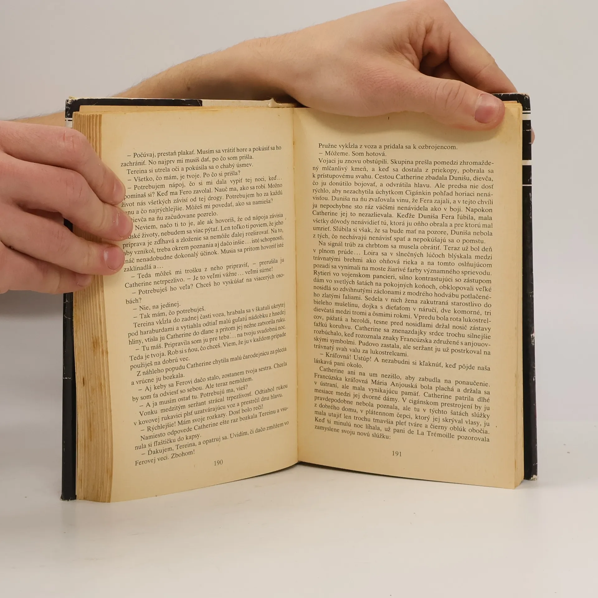 4. diel - Veľké poslanie. S krásnou Catherine sa čitateľ stretáva už od prvých riadkov 4. zväzku. Vernému františkánovi sa podarilo prepašovať nádherný čierny diamant do pevnosti Carlat, kam sa jeho majiteľka Catherine uchýlila po zničení Montsalvy. Začiatkom roku 1433 sa stáva dvornou dámou kráľovnej Jolandy. A zas ju prenasledujú chlapi ponukami, zase sa vydáva na útek, v poslednej chvíli ju zachráni verný Gauthier. Preoblieka sa za cigánku a prežije opäť dobrodružstvá, ktoré nemôžu nezaujať. Je Arnaud mŕtvy? Naozaj zahynul? Istý opát sa postará o jej syna a Catherine sa môže znovu vydať do sveta. (záložka knihy) 2. slovenské vydanie.