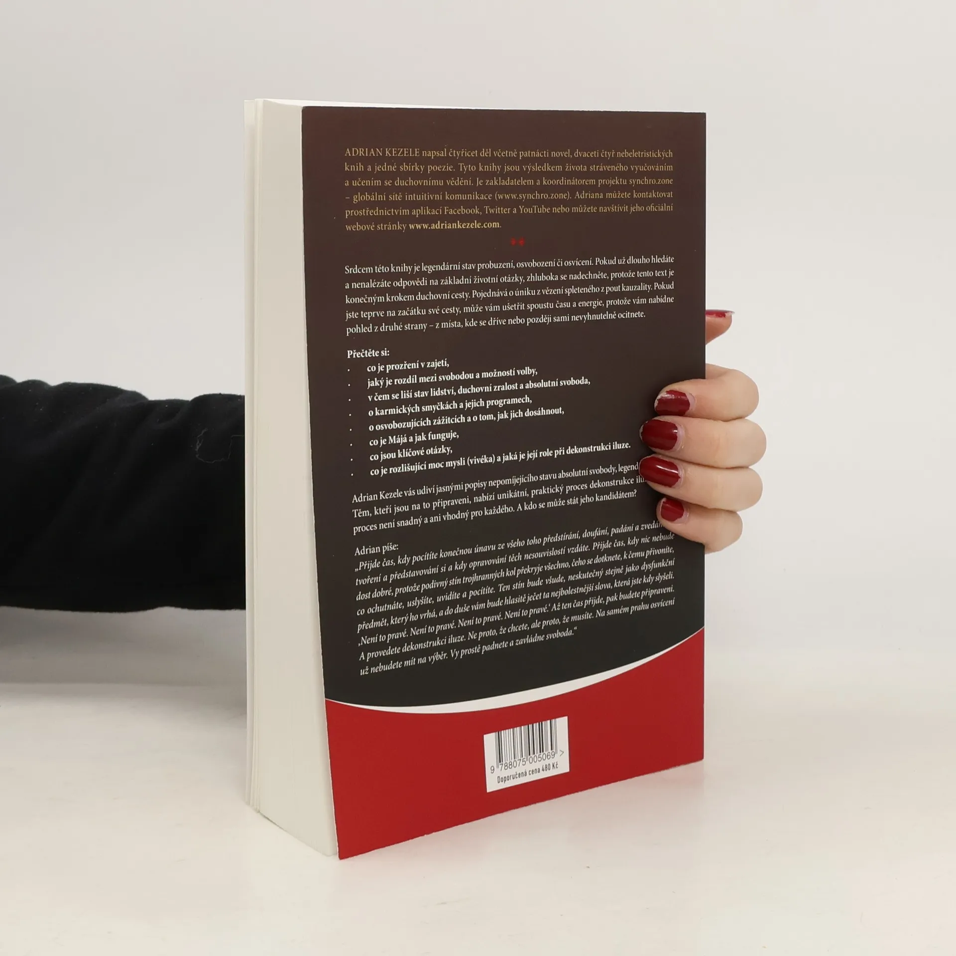 Srdcem této knihy je stav probuzení, osvobození či osvícení. Pokud hledáte odpovědi na základní životní otázky, tento text může být klíčovým krokem na vaší duchovní cestě. Pojednává o úniku z vězení kauzality a nabízí pohled na místo, kde se dříve nebo později ocitnete. Dozvíte se, co je prozření v zajetí, jaký je rozdíl mezi svobodou a možností volby, a jak se liší stav lidství, duchovní zralost a absolutní svoboda. Kniha se zabývá karmickými smyčkami, osvobozujícími zážitky a tím, jak jich dosáhnout, a také konceptem Májá a klíčovými otázkami. Adrian Kezele přináší jasné popisy absolutní svobody a legendární mókši, přičemž nabízí unikátní proces dekonstrukce iluze, který není snadný a není pro každého. Když pocítíte únavu ze všeho předstírání a doufání, nastane čas, kdy budete připraveni na tuto dekonstrukci. Na prahu osvícení už nebudete mít na výběr – padnete a zažijete svobodu.