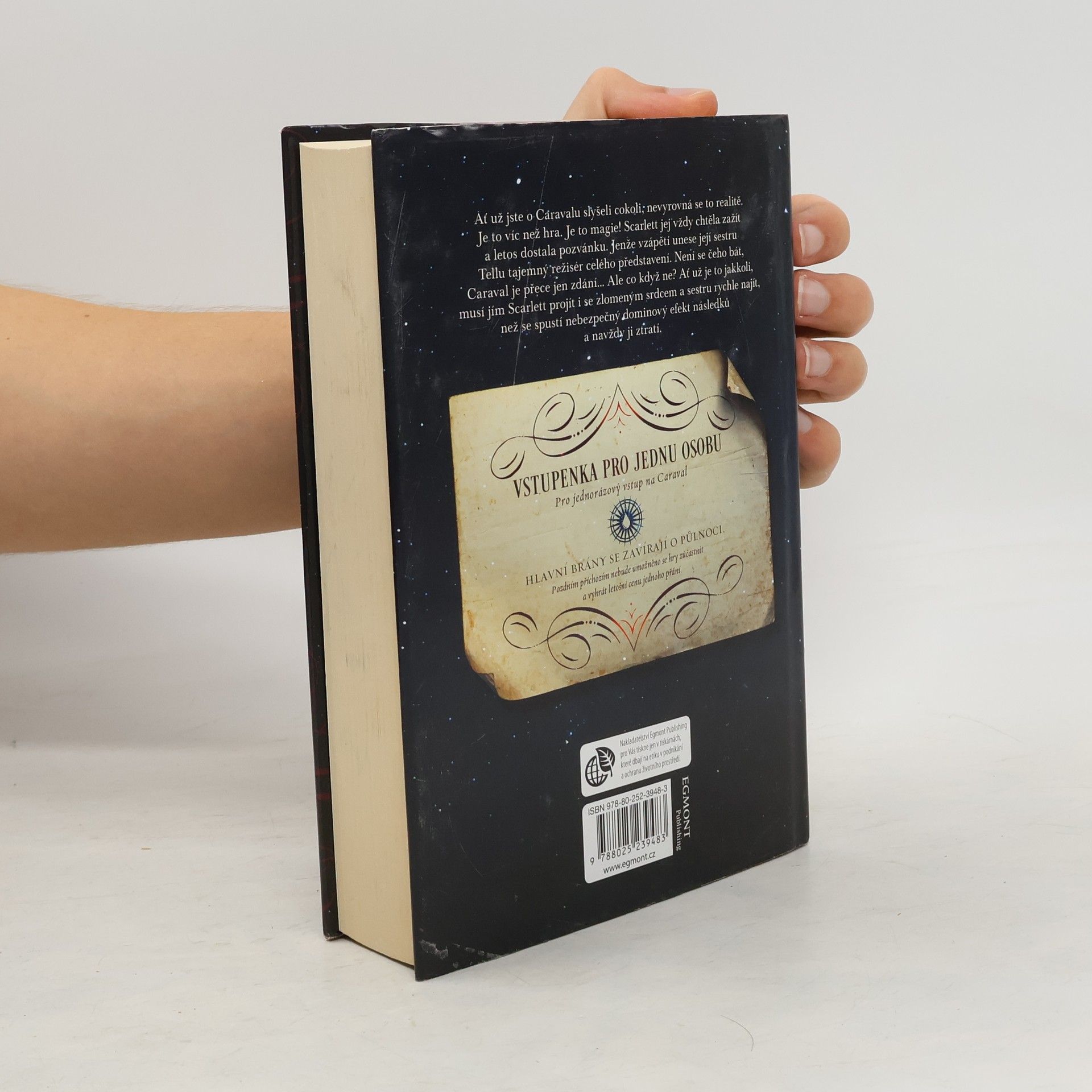 Než vstoupíte do světa Caravalu, mějte na paměti, že je to jen hra. Ať už jste o Caravalu slyšeli cokoli, určitě se to nevyrovná realitě. Je to víc než hra! Je to magie. Scarlett vždy toužila Caraval zažít a letos dostala pozvánku. Jenže vzápětí unese její sestru Tellu tajemný režisér celého představení. Není se čeho bát, Caraval je přece jen zdání. Ale co když ne? Ať už je to jakkoli, Caravalem musí Scarlett projít i se zlomeným srdcem a sestru rychle najít, než se spustí nebezpečný dominový efekt následků a navždy ji ztratí.