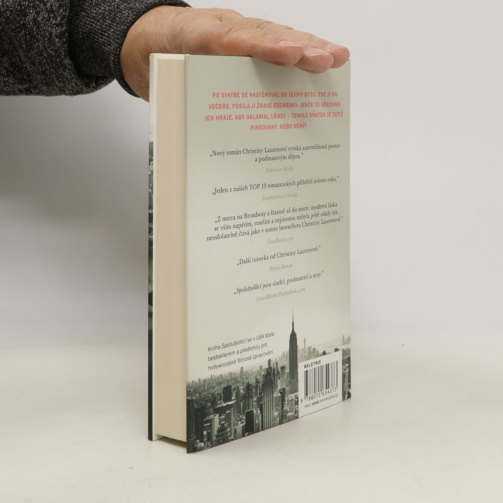 Když svatbou vztah nekončí, ale teprve začíná… Holland Bakkerová má byteček na Manhattanu, nenáročnou asistentskou práci v divadle a touhu stát se spisovatelkou. Už šest měsíců ale nenapsala ani řádku. Místo toho den co den postává ve stanici metra na Padesáté ulici a dychtivě poslouchá, když hraje On. Calvin, chlap s těma nejuhrančivějšíma zelenýma očima, neodolatelným irským přízvukem a ďábelskými prsty na strunách kytary. Právě takového sólistu by nutně potřebovali v divadle, které vede Hollandin strýc. Jenže to má drobný háček: Calvin je ve Státech už pár let nelegálně. Nenašla by se nějaká cesta, jak pro něj získat povolení k pobytu? Co třeba fingovaný sňatek? Christina Laurenová – je vůbec třeba něco dodávat? Přichází další romantický i zábavný příběh nejen pro čtenářky, které si oblíbily románové série Vášnivý a Božský. Tentokrát společně nakoukneme do oslnivého světa muzikálových divadel na Broadwayi, ale i do newyorských ulic, barů a samozřejmě také do ložnice hlavních hrdinů. Kniha Spolubydlící se v USA stala bestsellerem a předlohou pro hollywoodské filmové zpracování.