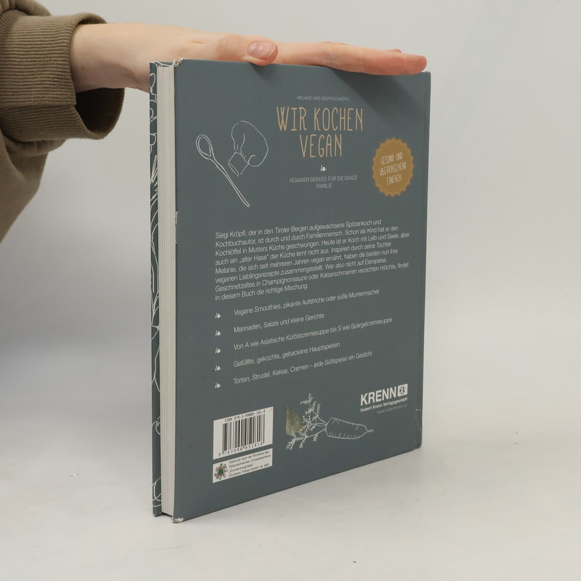 Der Tiroler Haubenkoch Siegi Kröpfl hat mit seiner Tochter ein veganes Kochbuch geschrieben. Es zeigt, dass die regionale und traditionelle österreichische Küche vegan gekocht werden kann und es überraschend einfach ist Tierprodukte zu ersetzen. Wer will denn schon auf Kaiserschmarren und Vanillekipferln verzichten?