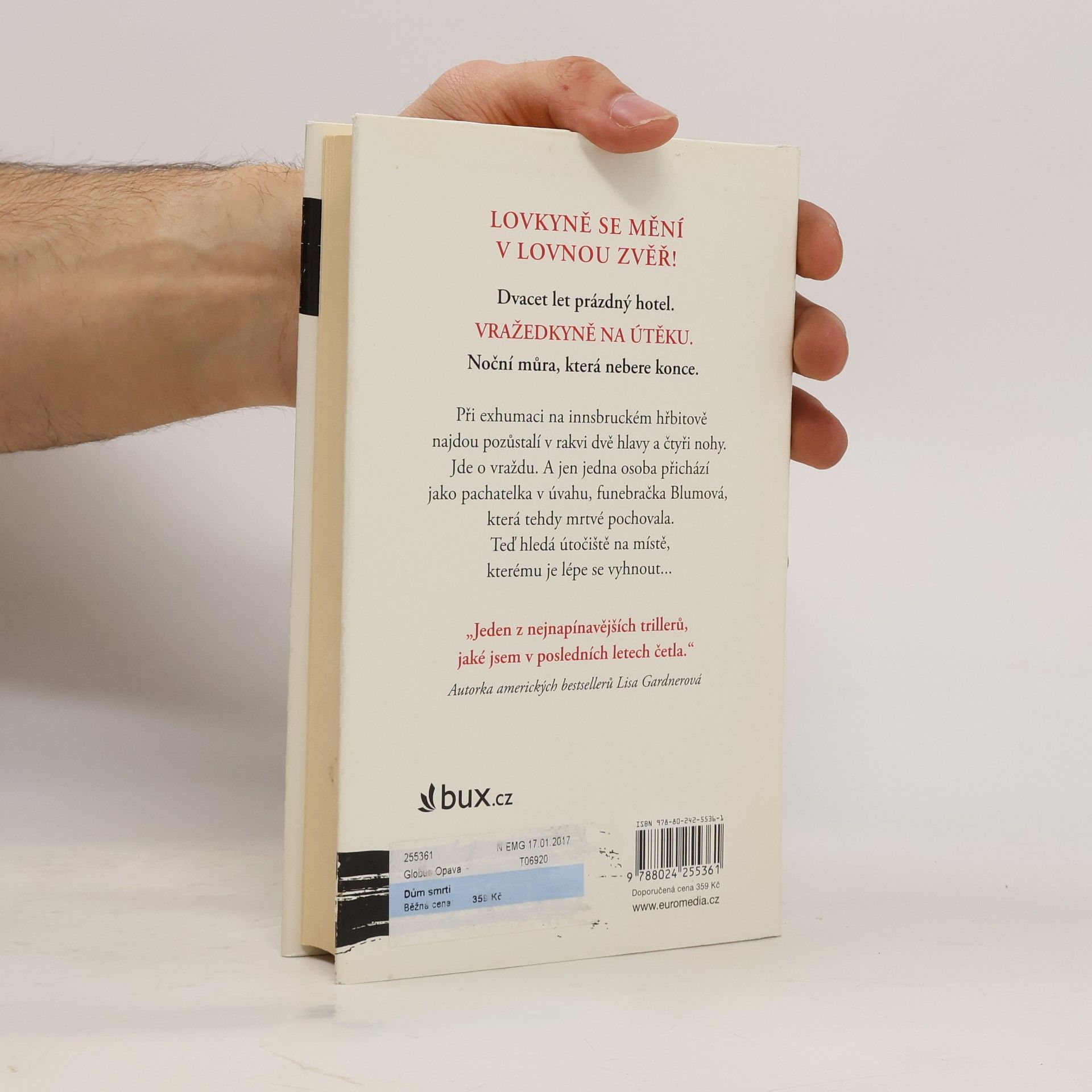 Lovkyně se mění v lovnou zvěř! Dvacet let prázdný hotel. Vražedkyně na útěku. Noční můra, která nebere konce. Při exhumaci na innsbruckém hřbitově najdou přítomní v rakvi dvě hlavy a čtyři nohy. Jde o vraždu. A jen jedna osoba přichází jako pachatelka v úvahu, funebračka Blumová, která tehdy mrtvé pochovala. Teď hledá útočiště na místě, kterému je lépe se vyhnout... Volné pokračování thrilleru Přítelkyně smrti.