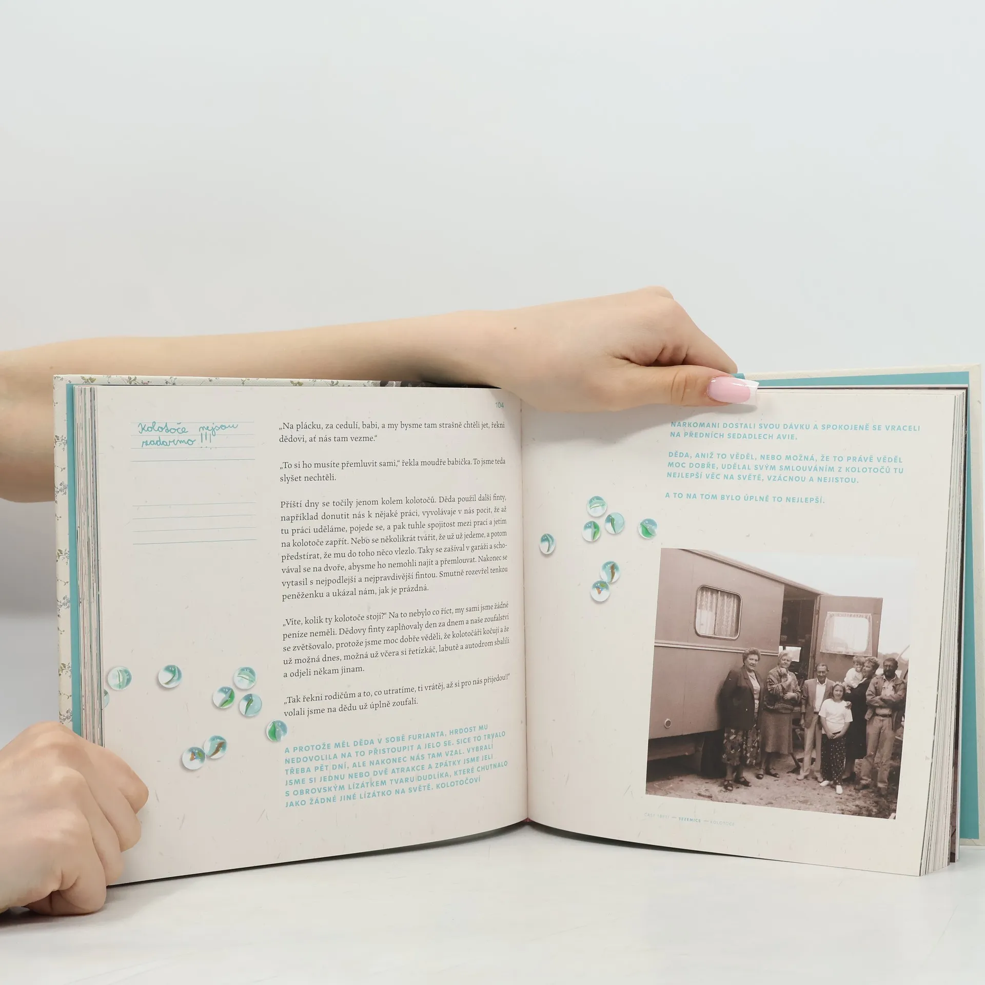 Dětství, to jsou hlavně prázdniny, babičky a dědové, videopůjčovny, tamagoči nebo Kačeří příběhy. Aspoň pro nás, děti devadesátek. Každá rodina má své příběhy a tohle jsou zápisky té mojí. Jsou to vzpomínky, nad kterými se usmívám a sem tam se i dojmu. Třeba nad tím, jaký to bylo retro, kdy se seznámili naši. Tahle kniha je napůl moje a napůl skvělé ilustrátorky Elišky Podzimkové. Díky jejím ilustracím se kniha nečte, ale prožívá a nasává všemi smysly!