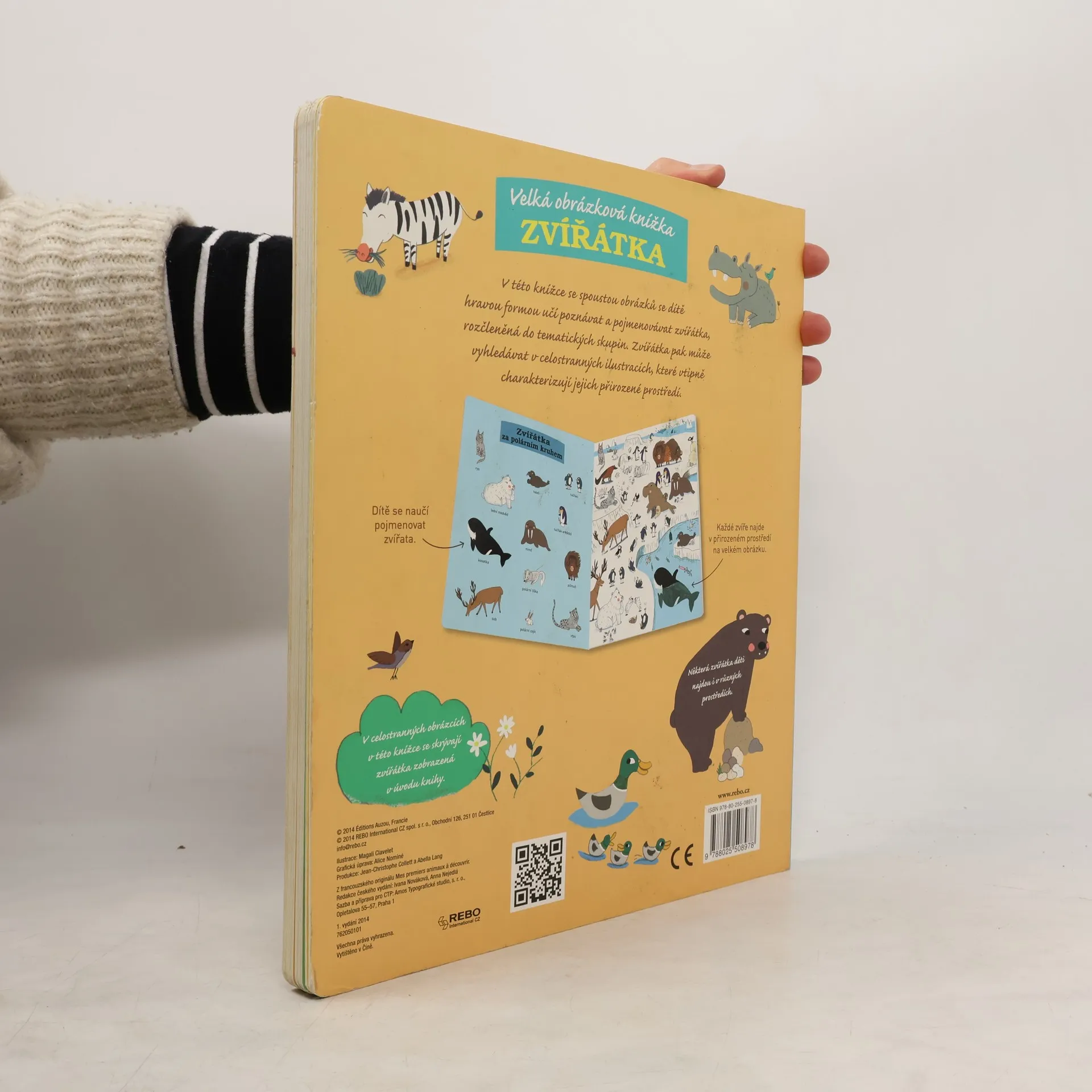 Knížky z edice Velká obrázková knížka s půvabnými ilustracemi jsou určeny nejmenším dětem, které si jistě oblíbí vyhledávání v celostranných obrázcích. V této knížce se spoustou obrázků se dítě hravou formou učí poznávat a pojmenovávat zvířátka, rozčleněná do tematických skupin. Zvířátka pak může vyhledávat v celostránkových ilustracích, které vtipně charakterizují. Velká obrázková knížka Zvířátka je nejen ideální příležitostí k učení hrou, ale i k společnému setkávání rodičů a dětí.