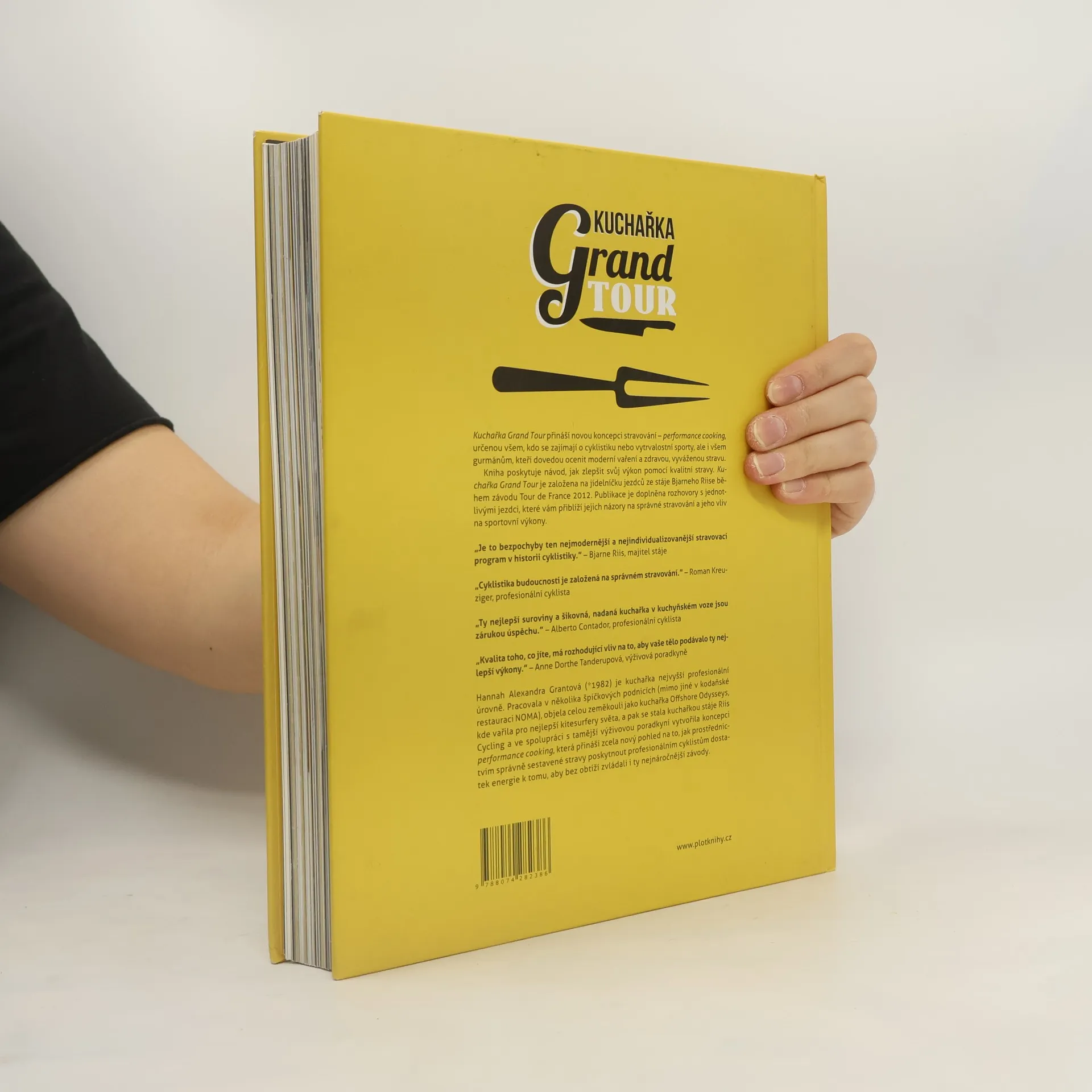 Máte rádi dobré jídlo, zdravý životní styl a chcete, aby vaše tělo správně fungovalo? Pak je to kuchařka právě pro vás! Představujeme vám kuchařku, která zaujme nejen ty, kdo se zajímají o cyklistiku, maratony a extrémní nebo vytrvalostní sporty, ale i všechny gurmány, kteří dovedou ocenit moderní vaření a zdravou, vyváženou stravu. V kuchařce Grand Tour se dozvíte nejen to, co závodníci každý z 21 dnů Tour de France jedí a jak dotyčné pokrmy připravit, ale i co si o závodech a pořádné stravě myslí sami jezdci.