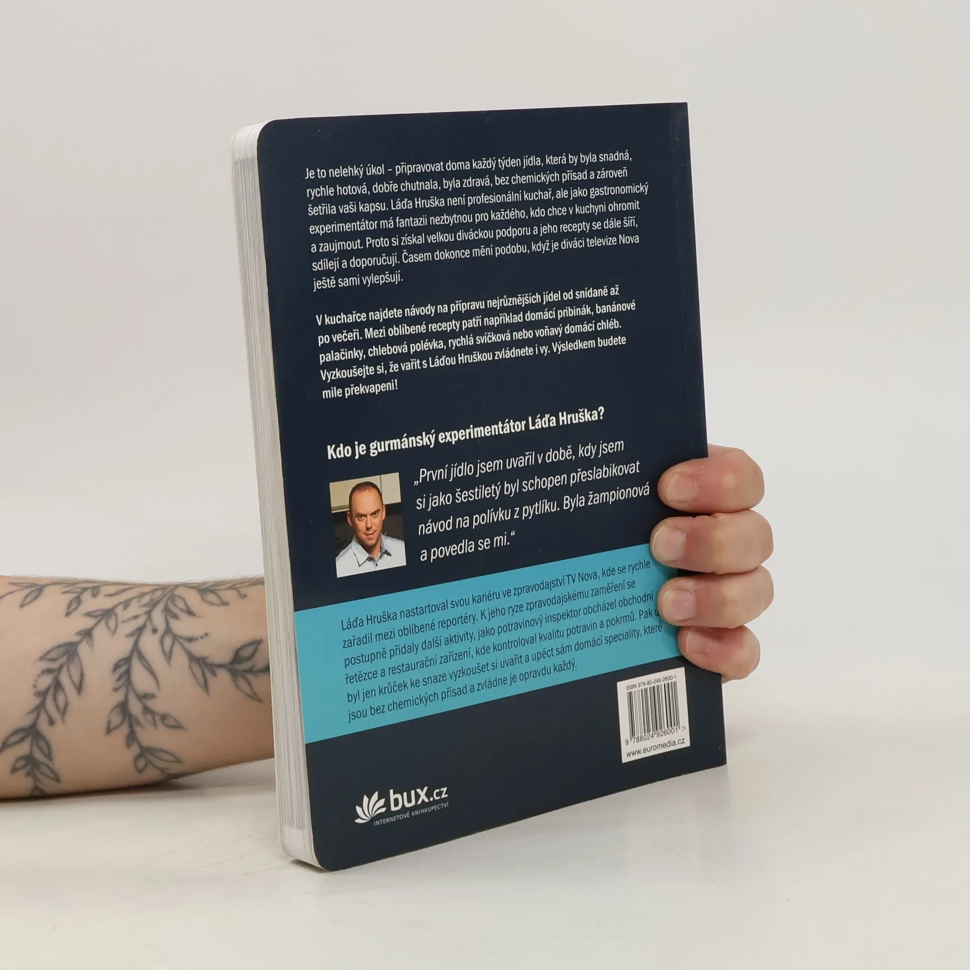 Populární potravinový inspektor a reportér TV NOVA Láďa Hruška se proslavil jako kuchař, který ukazuje, že vařit se dá levně a chutně. Sestavil sbírku unikátních a jednoduchých receptů na domácí pečivo, mléčné výrobky, polévky, hlavní jídla, dezerty a další dobroty za pár korun. Zkuste například domácí loupák s jahodovou marmeládou na snídani, pizzu z pomazánkového másla na oběd nebo nugátové croissanty ke kávě. Recepty zahrnují čerstvé pečivo pro celý den, dezerty a moučníky, dobroty k televizi, slaná i sladká hlavní jídla pro začátečníky i gurmány, mléčné výrobky, polévky a zmrzliny. Mezi recepty najdete Bábovku do hrnku, Banánové sušenky, Domácí chleba, Domácí jogurt, Fitness banánové palačinky, Kuřecí křídla jako z fastfoodu, Pizza z pomazánkového másla, Rychlou svíčkovou a mnoho dalších. Každý si zde najde inspiraci pro chutné a levné vaření, které potěší nejen chuťové buňky, ale i peněženku.