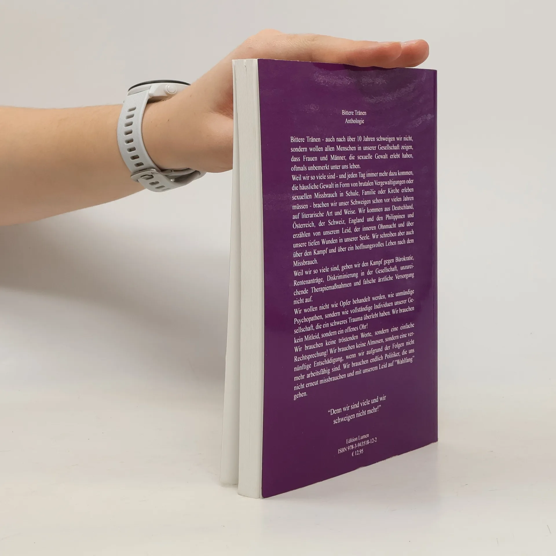 Bittere Tränen bedeutet Aufschrei, Aufdeckung und schließlich sogar Heilung. Ein Prozess, der auch in den unterschiedlichen Geschichten, Tagebuchaufzeichnungen und Gedichten zum Ausdruck gebracht wird und den über 80 Autorinnen und Autoren genutzt haben, um ihr jahrelanges Schweigen zu brechen. Authentisch, unzensiert oder stilistisch überarbeitet geben Überlebende von sexuellem Missbrauch, sexueller Gewalt, Einblick in die Tiefe ihrer verletzten Seele.