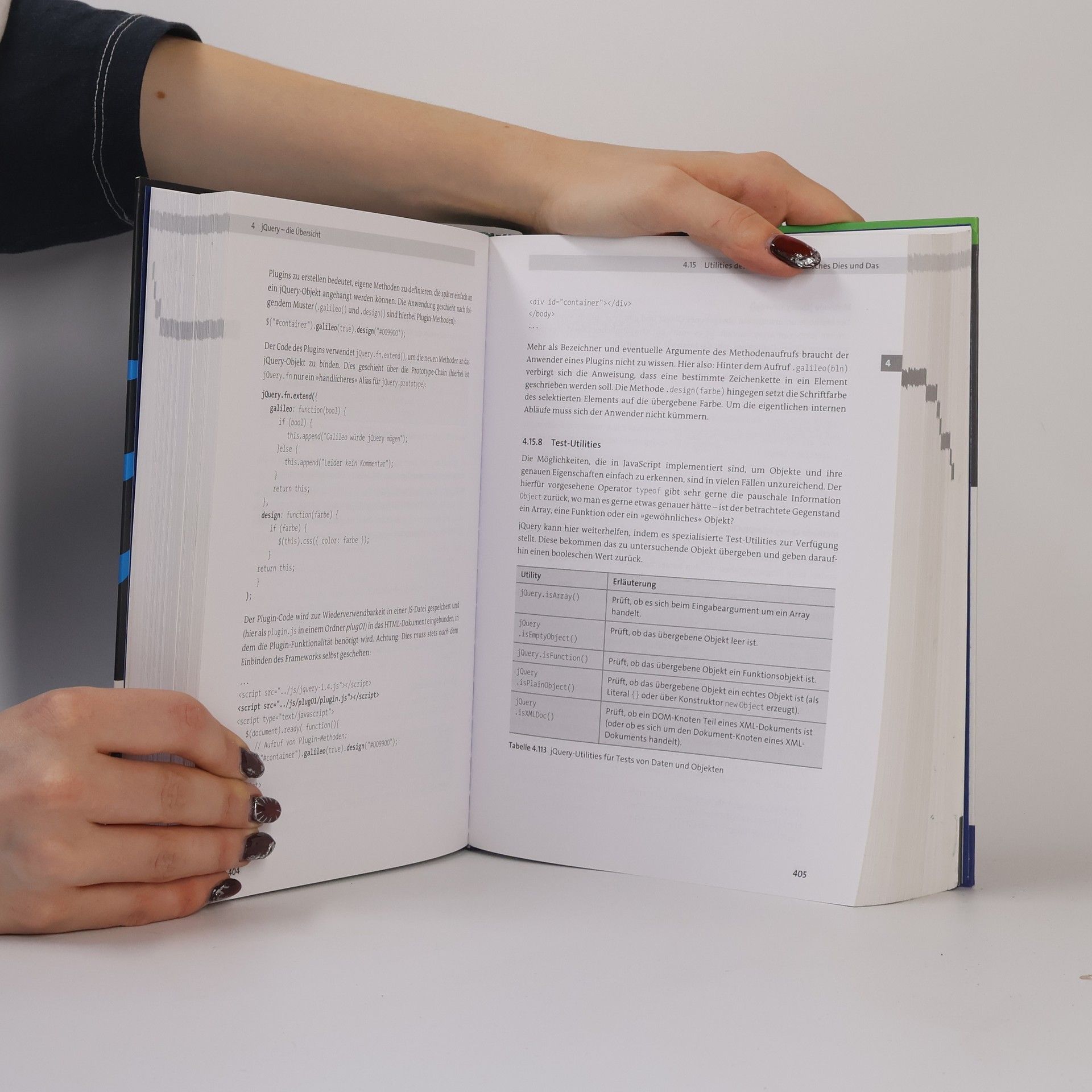 Beim Framework jQuery handelt es sich um eine Erweiterung der Skriptsprache JavaScript. Es unterstützt die Arbeit der Web-Anwendungsentwickler und wird auf vielen Webseiten eingesetzt. Die beiden Autoren haben eine sehr umfangreiche und praxisorientierte Einführung erarbeitet, die jetzt in einer neuen, aktualisierten Auflage vorliegt (zuletzt 2. Auflage: ID-B 43/11). Den behutsamen Veränderungen in den 4 Anfangskapiteln folgen ein neues Unterkapitel zur Skriptorganisation und völlig neu eingerichtete Kapitel zum jQuery User Interface (jQuery UI), zur Plug-in-Entwicklung und zum Responsive Webdesign. Letzteres ergänzen eine Überarbeitung des Kapitels zu jQuery mobile und ein Zusatzkapitel für Fortgeschrittene zu jQuery-Build. In die Überarbeitung einbezogen wurde auch das Abschlusskapitel zum Testen von Anwendungen. Obsolete Inhalte wurden entfernt. Alle Kapitel enden mit Zusammenfassungen. In dieser Form ist die Bezeichnung Standardwerk zu jQuery gerechtfertigt. Vorausgabe ersetzen. Vor R. Steyer (ID-B 15/14). (2) (LK/HB: Isigkeit)