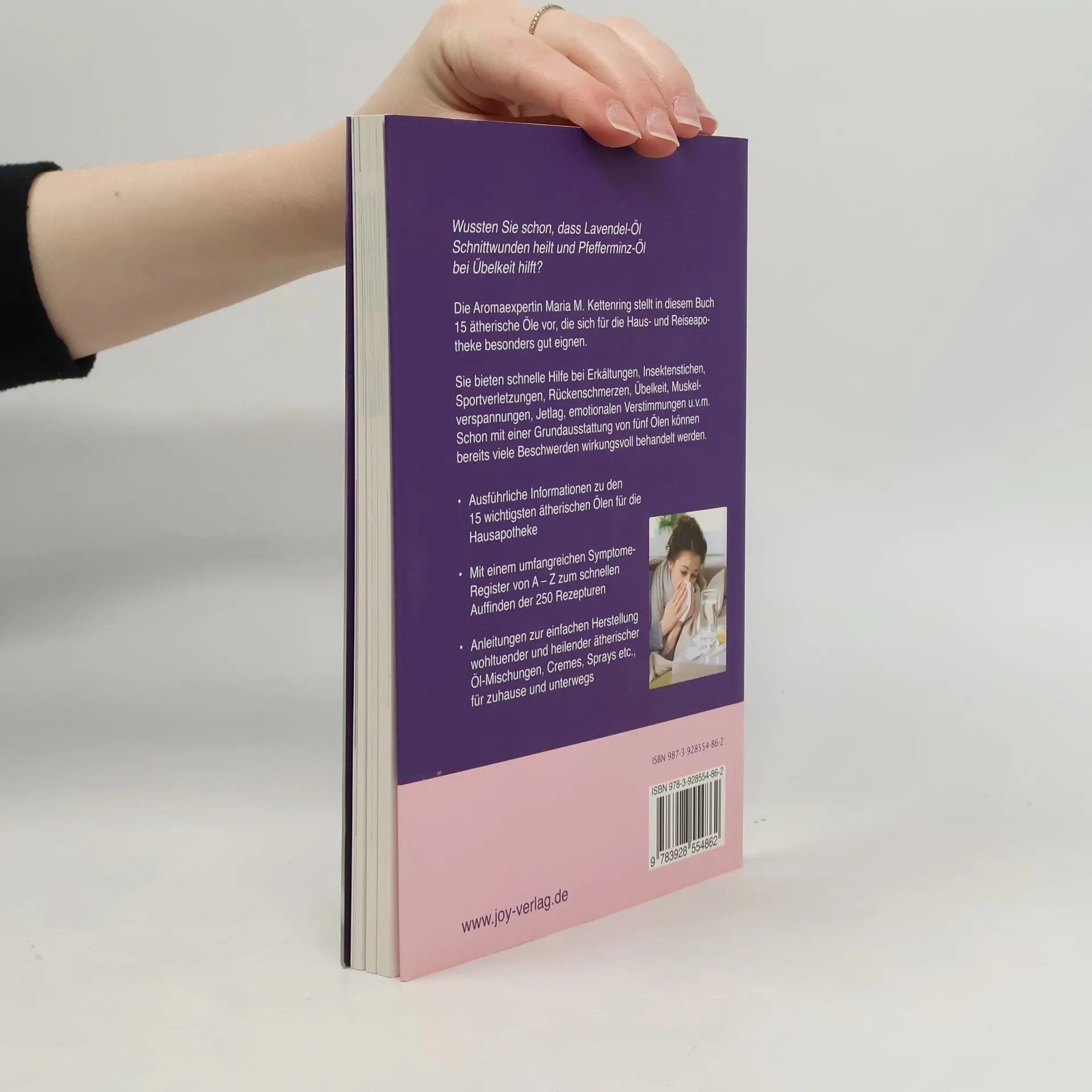 Die Aromaexpertin Maria M. Kettenring stellt in ihrem neuen Buch 13 ätherische Öle vor, die sich für die Haus- und Reiseapotheke besonders gut eignen. Sie bieten schnelle Hilfe bei Erkältungen, Insektenstichen, Sportverletzungen, Muskelverspannungen, Rückenschmerzen, Übelkeit, Jetlag, emotionalen Verstimmungen u. v. m. Schon mit einer Grundausstattung von fünf Ölen können bereits viele Beschwerden wirkungsvoll behandelt werden. - Ausführliche Informationen zu den 13 wichtigsten ätherischen Ölen für die Hausapotheke - Mit einem umfangreichen Symptome-Register von A–Z für den schnellen Zugriff auf über 250 Rezepturen - Anleitungen zur einfachen Herstellung wohltuender und heilender ätherischer Öl-Mischungen, Cremes, Sprays etc., für zuhause und unterwegs