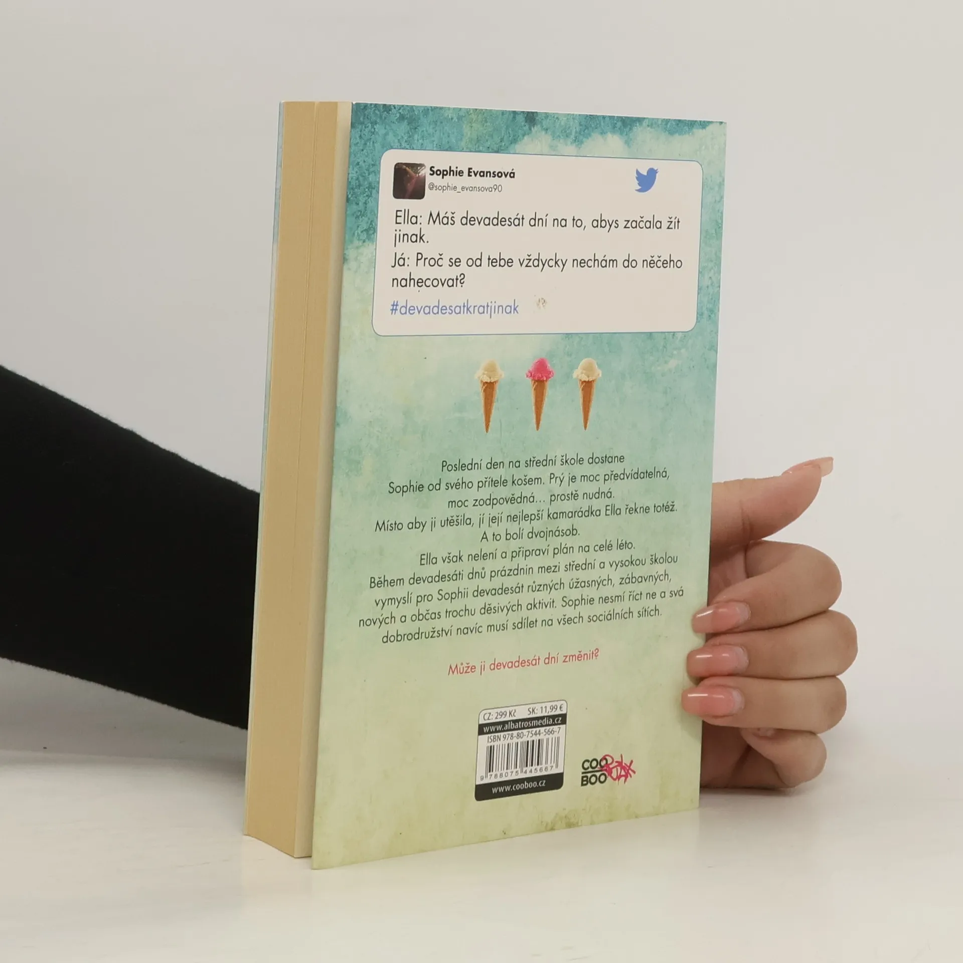 Poslední den na střední škole se dostane Sophie od svého přítele košem. Prý je moc předvídatelná, moc zodpovědná… prostě nudná. Její nejlepší kamaráda Ella jí místo toho, aby ji utěšila, řekne totéž. A to bolí dvojnásob. Ella však nelení a připraví plán na celé léto. Během devadesáti dnů prázdnin mezi střední a vysokou školou vymyslí pro Sophii devadesát různých úžasných, zábavných, nových a občas trochu děsivých aktivit. Sophie nesmí říct ne a svá dobrodružství navíc musí sdílet na všech sociálních sítích. Může ji devadesát dní změnit?