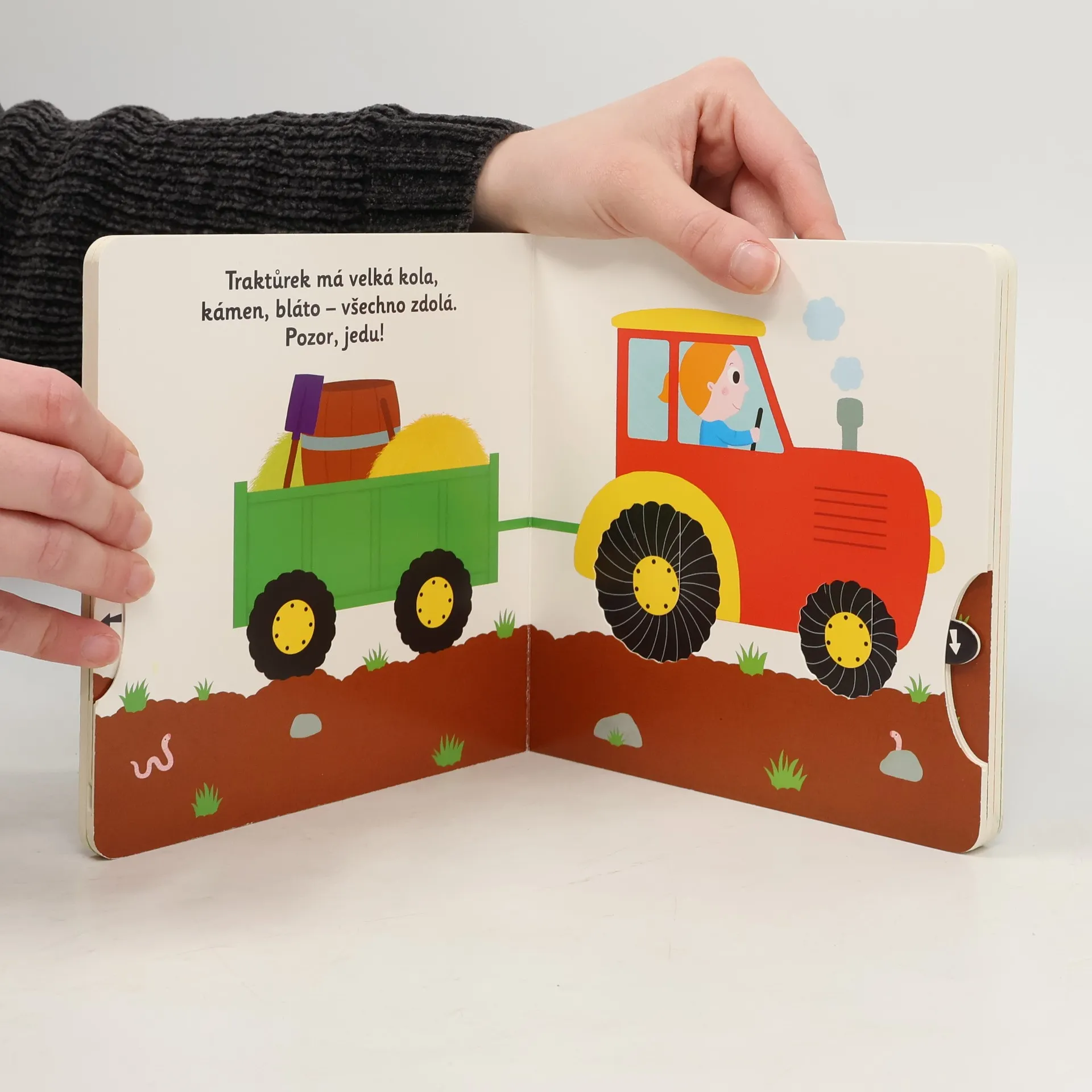 Malý traktůrek má hodně práce, pojďme se podívat, co jej čeká. Objevovat svět s tímto leporelem je tak zábavné! Kampak jede malý traktůrek a co všechno má dnes na práci? Pojeďme s ním, možná bude potřebovat naši pomoc. Objevovat svět s tímto leporelem pro nejmenší děti od jednoho roku je tak zábavné! Pevné stránky s pohyblivými prvky procvičí i jemnou motoriku. Stačí jen vložit prstík do správného otvoru a lehce vysunout, zatáhnout nebo otočit a hned bude váš malý objevitel znát odpovědi.