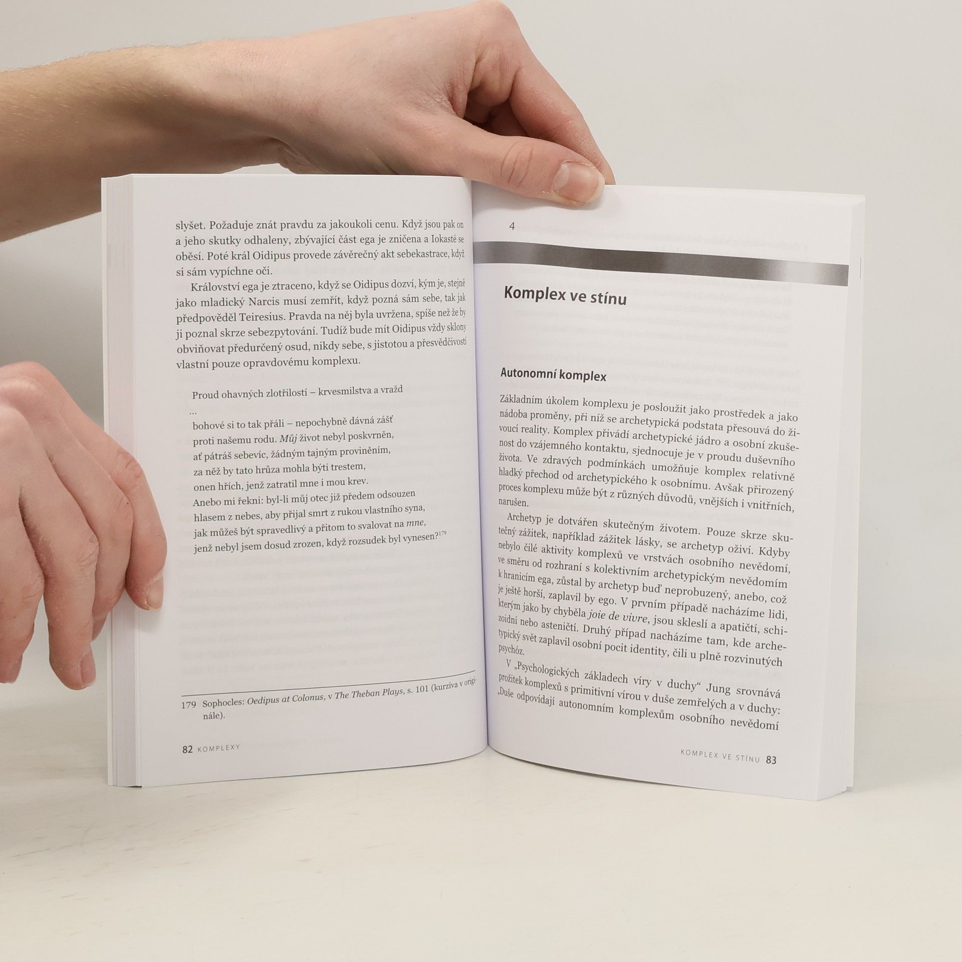 Komplex, jako pojítko mezi vědomým já a archetypy, přebývá v našem nevědomí. Pokud je odštěpený, nepřístupný vědomí, může být autonomní, nezávislý na egu a může výrazně ovlivňovat naše jednání bez naší kontroly. Porozumět vlastním komplexům znamená rozpoznat jejich archetypální jádro, shluky životních zkušeností, které se kolem něj utvářejí, a emoční tón, jenž je rozpoznatelným pojítkem těchto zkušeností. Z praktického hlediska to znamená porozumět spojení mezi archetypálními silami, které tvoří naši nevědomou lidskou podstatu, a osobními životními zkušenostmi, které utvářejí naše individuální vnímání této energie. Naše bytostné Já, stejně jako vědomé já je vždy doprovázeno stínem, v němž přebývají odštěpené (vytěsněné, potlačené) komplexy. S tím, jak se odvíjí dialog vědomého já s nevědomím, dochází k integraci komplexů do já a hranice já se stávají pružnějšími. Autor srozumitelně rekapituluje vývoj pojmu od Freuda, Junga, Adlera až k současným pojetím, objasňuje podstatu konceptu a dokresluje svá pozorování s použitím citací z prací svých předchůdců, beletrie a své klinické praxe při práci se sny.