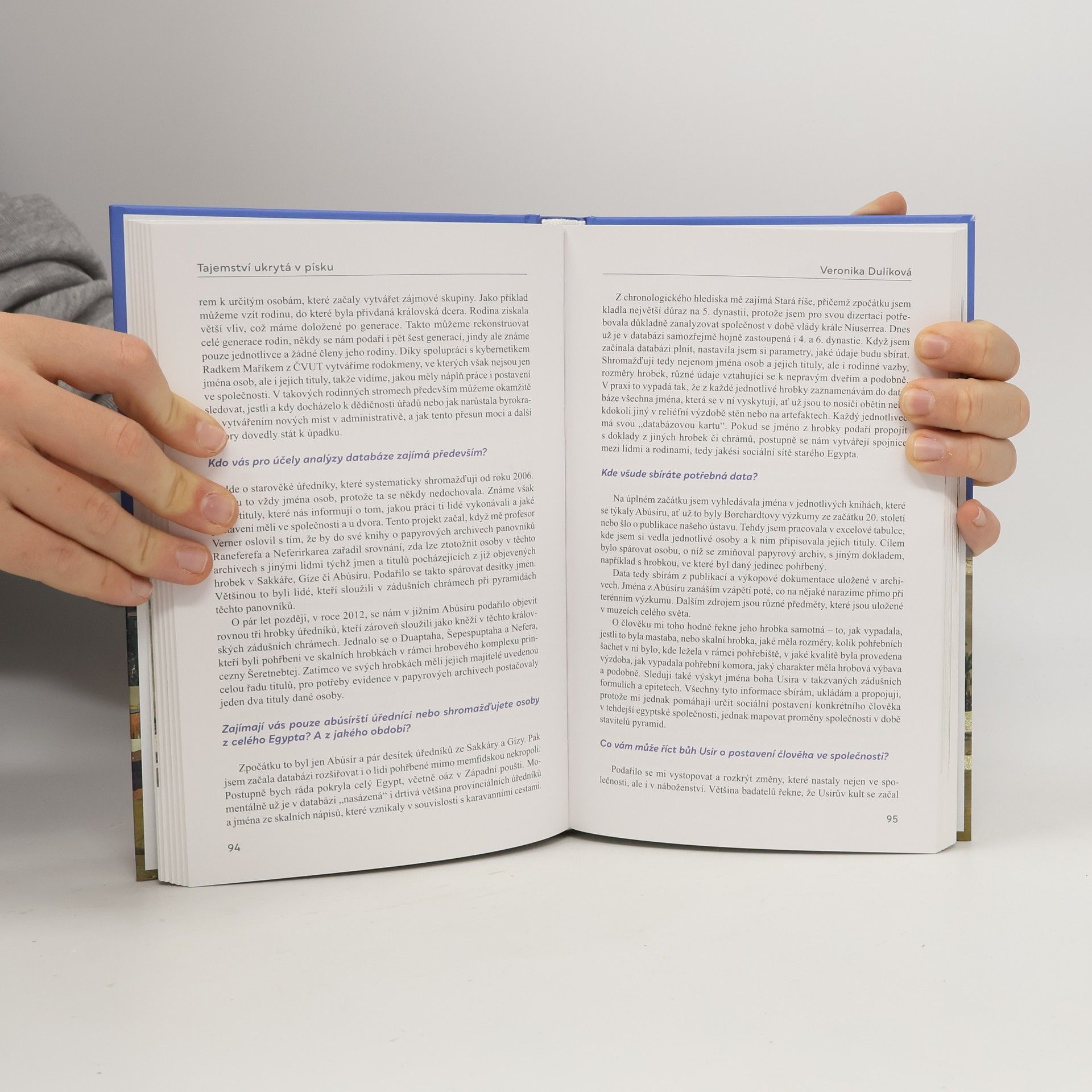 Kniha vychází k výročí 100 let české egyptologie. Český vědecký tým patří mezi ty nejrespektovanější v zemi faraonů. Dozvíte se o nejvýznamnějších nálezech českých egyptologů či jak to chodí na nalezišti v Abúsíru, kde má koncesi Český egyptologický ústav. Knihou provázejí rozhovory s nejvýznamnějšími egyptology v čele Miroslavem Vernerem a Miroslavem Bártou.