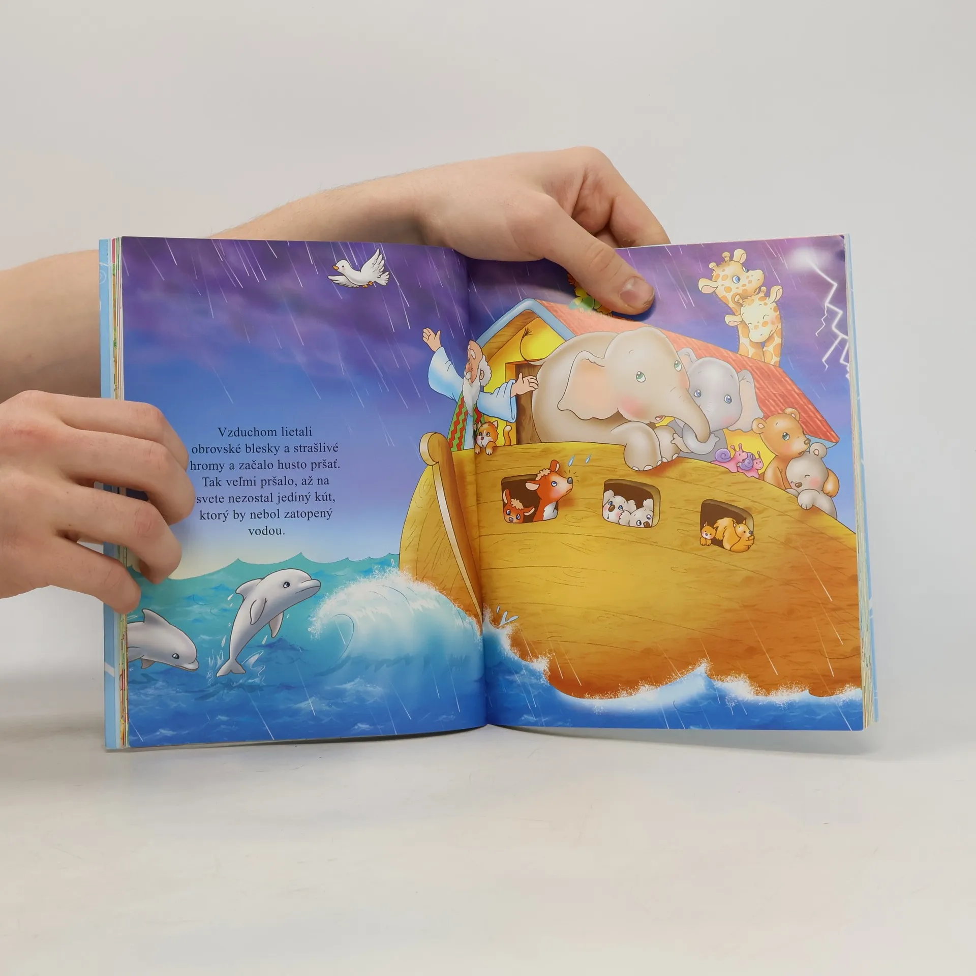 Táto knižka obsahuje prerozprávané najznámejšie biblické príbehy ako Stvorenie sveta, Adam a Eva, Noemova archa, Dávid a Goliáš, Jonáš a veľryba a mnoho iných. Jednotlivé príbehy sú písané jednoduchým a zrozumiteľným štýlom, takže im porozumejú aj tie najmenšie deti. Text je navyše písaný veľkými písmenami, ktoré sú vhodné aj pre začínajúcich čitateľov. Čo však v tejto knihe zaujme na prvý pohľad, sú prekrásne celostránkové ilustrácie.