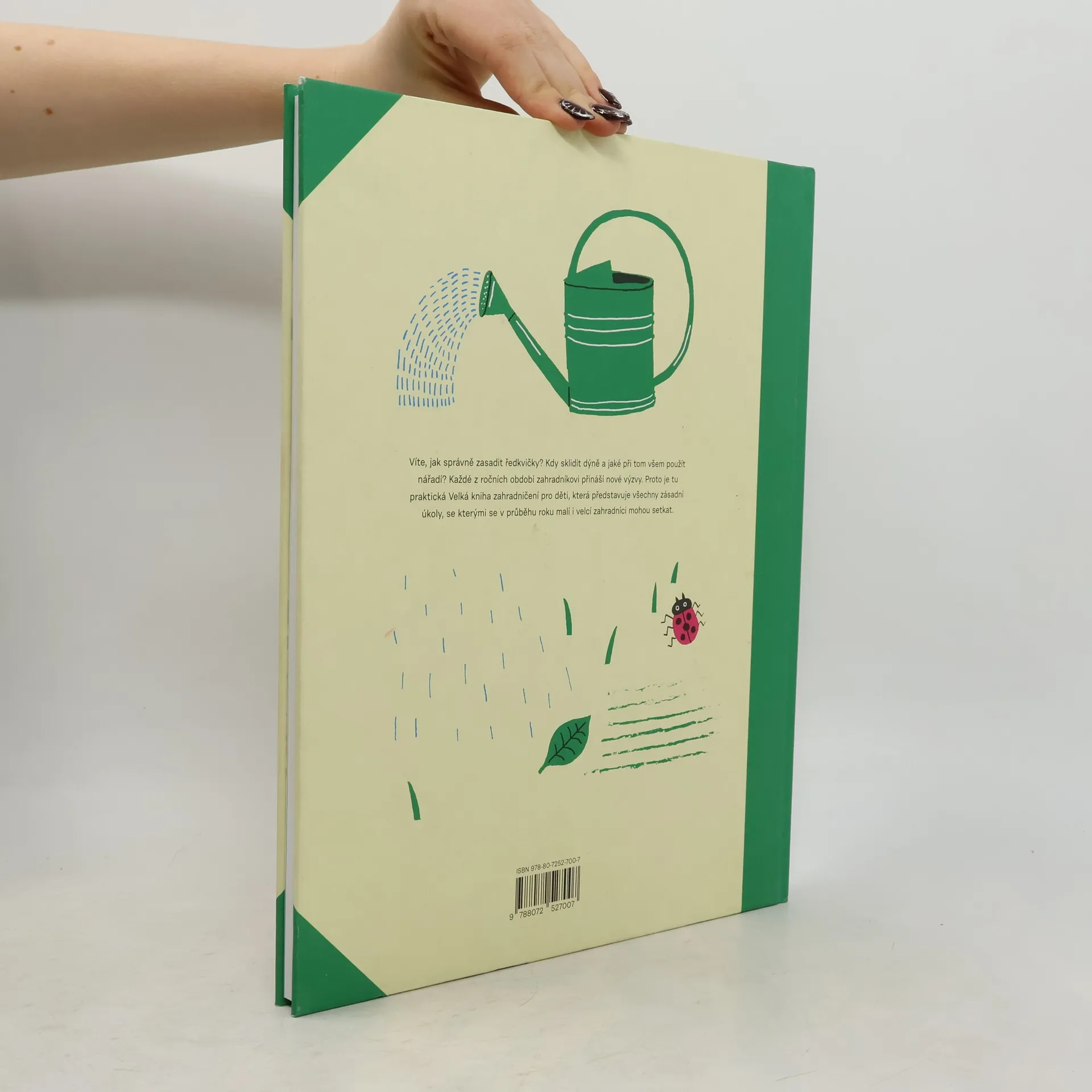 Ideální pomocník pro malé i velké zahradníky Víte, jak správně zasadit ředkvičky? Kdy sklidit dýně a jaké při tom všem použít nářadí? Každé z ročních období zahradníkovi přináší nové výzvy. Proto je tu praktická Velká kniha zahradničení pro děti, která s pomocí hravých ilustrací Elisy Géhin představuje všechny zásadní úkoly, se kterými se v průběhu roku malí i velcí zahradníci mohou setkat. Velkoformátová kniha rozdělená na 4 části (jaro, léto, podzim, zima) učí děti, jak vypěstovat a sklidit svou první úrodu a mít z ní co největší užitek. Nabádá je ale také k tomu, aby svět odehrávající se na našich zahradách a balkonech více vnímaly a obdivovaly. Budou proto třeba pozorovat pohyb květin při měsíčku nebo se učit rozeznávat jedlé volně rostoucí květiny. Z této knihy ovšem nebudou nadšené jen děti. Nabízí totiž velké množství tipů a rad zkušených zahradníků, které mohou být užitečné i pro dospělé zahrádkáře. Věděli jste například, že nejlepším opatřením proti slimákům, je vedle květiny položit kolečko okurky?