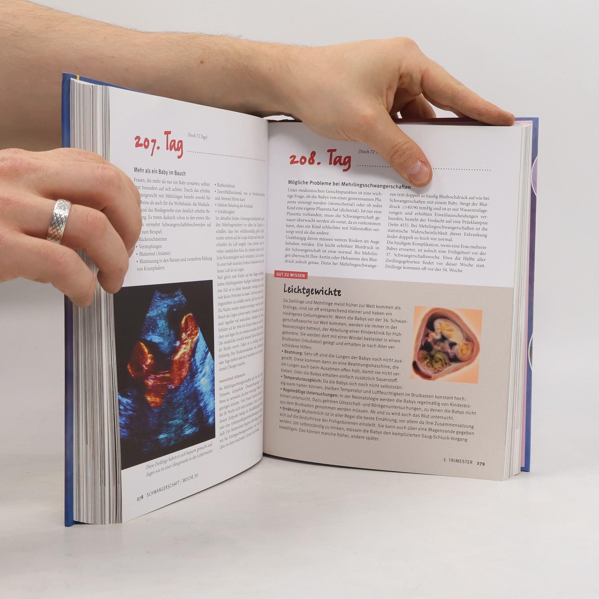 Dieser große, bilderreiche Schwangerschaftsratgeber begleitet werdende Mütter und Väter auf einem der spannendsten Wege: In 280 Tagen wächst im Bauch ein Baby heran. Das anschaulich gemachte Nachschlagewerk gibt an jedem Tag der Schwangerschaft Orientierung - mit informativen und faszinierenden Fotos, fundiertem Wissen und praktischen Tipps aus der Hebammen- und ärztlichen Praxis. Beeindruckende Aufnahmen aus dem Uterus zeigen, wie sich das Baby entwickelt. Moderne Computergrafiken zeigen u. a. die Veränderungen im Körper der Frau, demonstrieren die verschiedenen Vorsorgeuntersuchungen und Wissenswertes rund um den Geburtsvorgang. Ebenso anschaulich und übersichtlich werden mögliche Beschwerden, Tipps fürs Wohlbefinden sowie alles Wichtige zum Wochenbett erklärt. - Ein fundierter und bewegender Ratgeber für werdende Eltern.