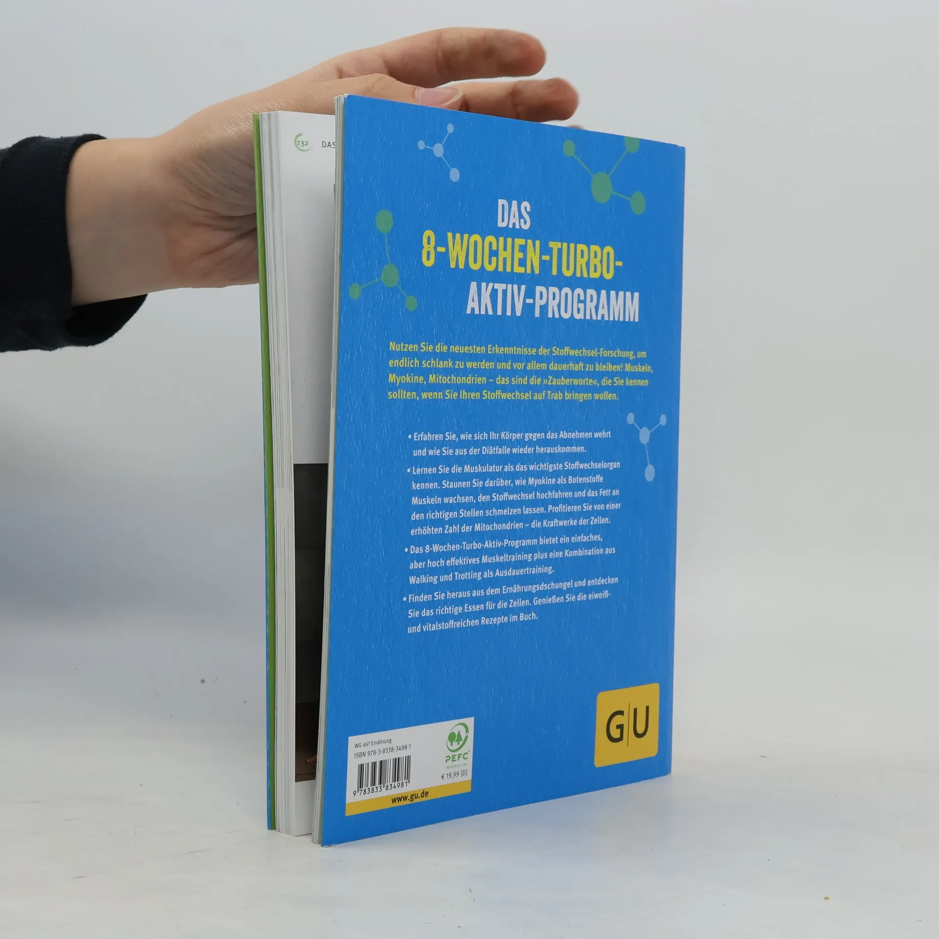 Nutzen Sie die Erkenntnisse der Stoffwechsel-Forschung, um schlank zu werden und dauerhaft zu bleiben. Mit gezieltem Muskeltraining wird der Turbo gezündet! Myokine, hormonähnliche Botenstoffe, unterstützen die Fettverbrennung, insbesondere an Problemzonen. Das abwechslungsreiche 8-Wochen-Turbo-Aktiv-Programm setzt dies effektiv um. Die Übungen sind so gestaltet, dass auch Übergewichtige und Ungeübte leicht einsteigen können. Ein begleitendes Ernährungsprogramm rundet das Konzept ab und bietet eine Lösung für alle, die trotz zahlreicher Diäten nicht abnehmen konnten, da diese den Stoffwechsel aus dem Takt gebracht haben. Der entscheidende Unterschied zu herkömmlichen Diäten: Um erfolgreich und nachhaltig abzunehmen, sollten Sie mit Ihrem Körper arbeiten, nicht gegen ihn. Diäten senken den Stoffwechsel und reduzieren wichtige Muskelmasse. Der Körper kann überflüssige Pfunde selbst abwerfen, wenn der Stoffwechsel richtig angeregt wird. Regelmäßige Bewegung und eine auf den Biorhythmus abgestimmte Ernährung fördern die Fettverbrennung. Die Kombination aus Ausdauer- und Krafttraining erhöht den Grundumsatz, sodass der Körper effektiv Fett verbrennt. Bringen Sie Ihren Körper in nur acht Wochen auf Hochtouren!