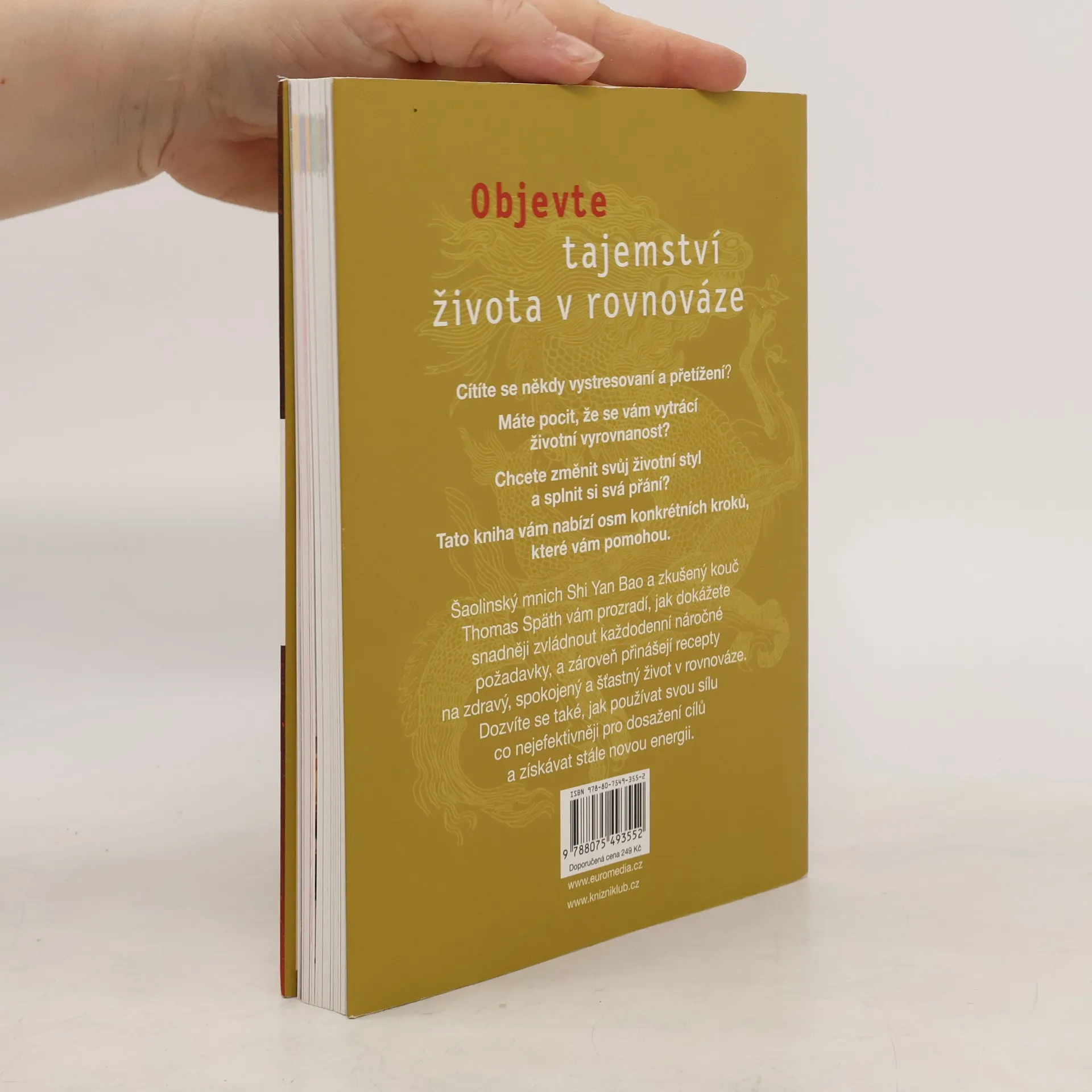 Šaolinský mnich Shi Yan Bao a zkušený kouč Thomas Späth vám v této knize prozradí, jak dokážete snadněji zvládnout požadavky každodenního života. Přinášejí recepty na zdravý, spokojený a šťastný život v rovnováze. Dozvíte se také, jak používat svou sílu co nejefektivněji pro dosažení cílů a získávat stále novou energii.