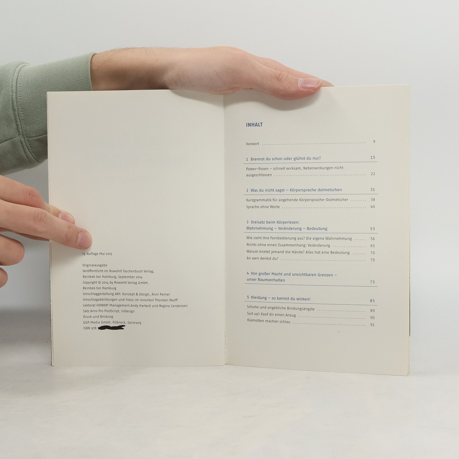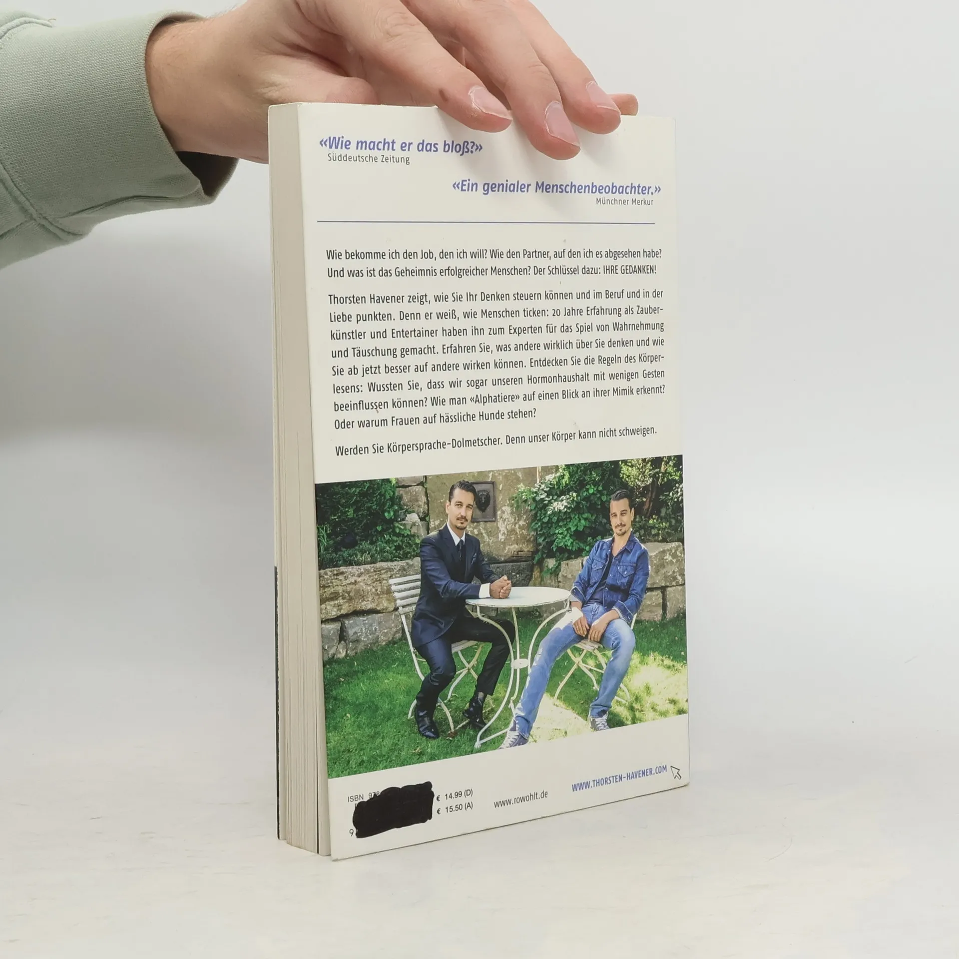 Wie bekomme ich den Job, den ich will? Wie gewinne ich den Partner meiner Träume? Der Schlüssel liegt in unseren Gedanken! Thorsten Havener zeigt, wie Sie Ihr Denken steuern und in Beruf und Liebe erfolgreich sein können. Mit 20 Jahren Erfahrung als Zauberkünstler hat er ein tiefes Verständnis für Wahrnehmung und Täuschung entwickelt. Lernen Sie, was andere wirklich über Sie denken und wie Sie besser auf andere wirken können. Entdecken Sie die Regeln des Körperlesens: Wussten Sie, dass Gesten sogar unseren Hormonhaushalt beeinflussen können? Erfahren Sie, wie man „Alphatiere“ an ihrer Mimik erkennt und warum Frauen oft zu hässlichen Hunden hingezogen werden. Werden Sie Körpersprache-Dolmetscher, denn unser Körper kann nicht lügen. Der Körperleser-Dreisatz zeigt, dass zuerst der Gedanke, dann der Körper und schließlich die Worte kommen. Achten Sie darauf, Ihr Gegenüber zuerst anzulächeln, bevor Sie sprechen. Die Fußhaltung verrät, in welche Richtung jemand denkt. Zeigen Ihre Fußspitzen auf Ihr Gegenüber? Ein Schritt auf die Person zu kann deren Einstellung zu Ihnen offenbaren. Das Wackel-Dackel-Prinzip demonstriert, dass Nicken ansteckend ist und Ihr Gegenüber dazu bringt, eher „ja“ zu sagen. Entschlüsseln Sie den Körpersprache-Code von Frauen und Männern in Beruf und Liebe, unterstützt durch wissenschaftliche Erkenntnisse und faszinierende Experimente.