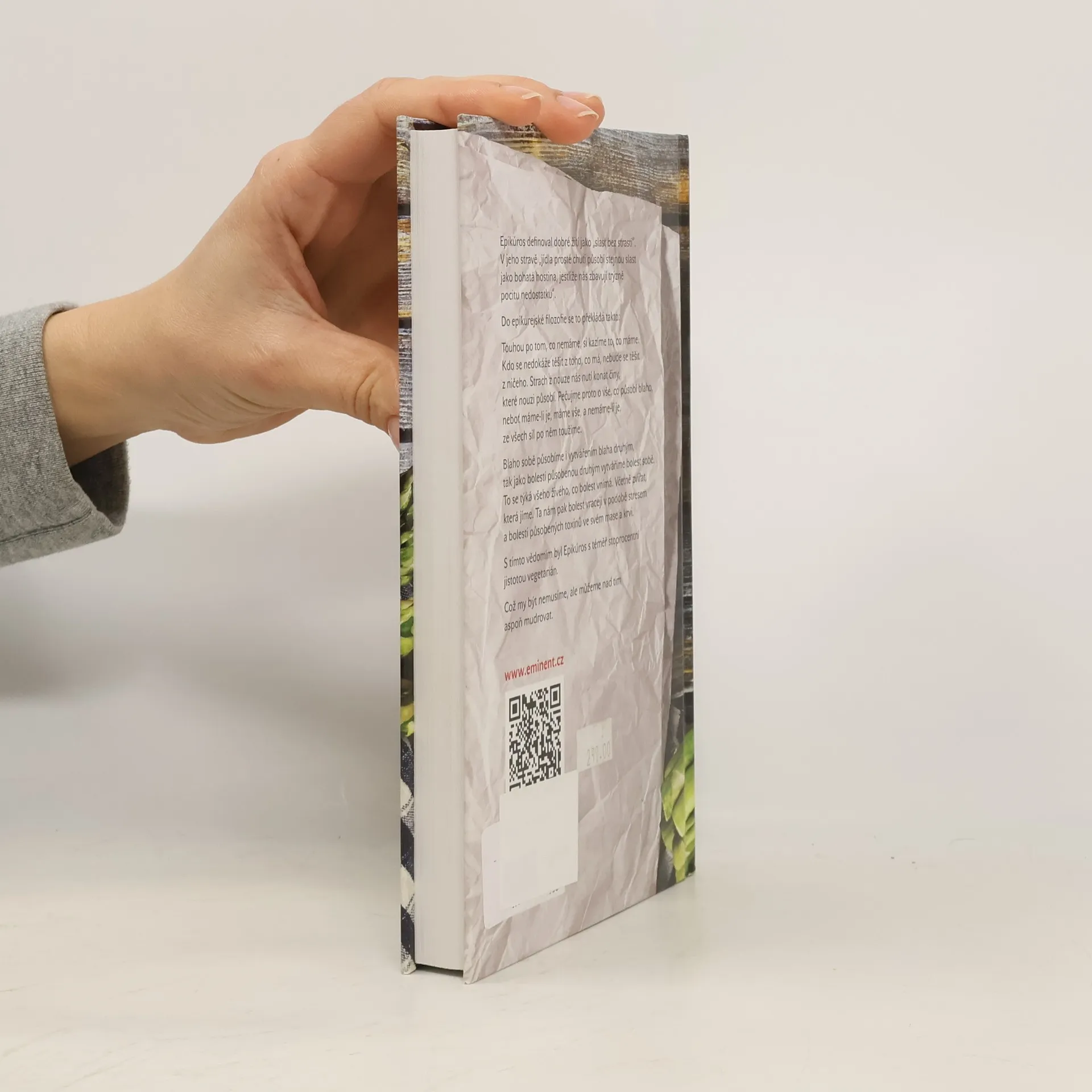 Epikúros definoval dobré žití jako "slast bez strasti". V jeho stravě "jídla prosté chuti působí stejnou slast jako bohatá hostina, jestliže nás zbavují trýzně pocitu nedostatku". Do epikurejské filozofie se to překládá takto: Touhou po tom, co nemáme, si kazíme to, co máme. Kdo se nedokáže těšit z toho, co má, nebude se těšit z ničeho. Strach z nouze nás nutí konat činy, které nouzi působí. Pečujme proto o vše, co působí blaho, neboť máme-li je, máme vše, a nemáme-li je, ze všech sil po něm toužíme. Blaho sobě působíme i vytvářením blaha druhým, tak jako bolestí působenou druhým vytváříme bolest sobě. To se týká všeho živého, co bolest vnímá. Včetně zvířat, která jíme. Ta nám pak bolest vracejí v podobě stresem a bolestí působených toxinů ve svém mase. S tímto vědomím byl Epikúros s téměř stoprocentní jistotou vegetarián. Benjamin Kuras v této netradiční kuchařce svou vtipnou formou předkládá řadu receptů, která budou působit blaho vám i vašemu okolí.