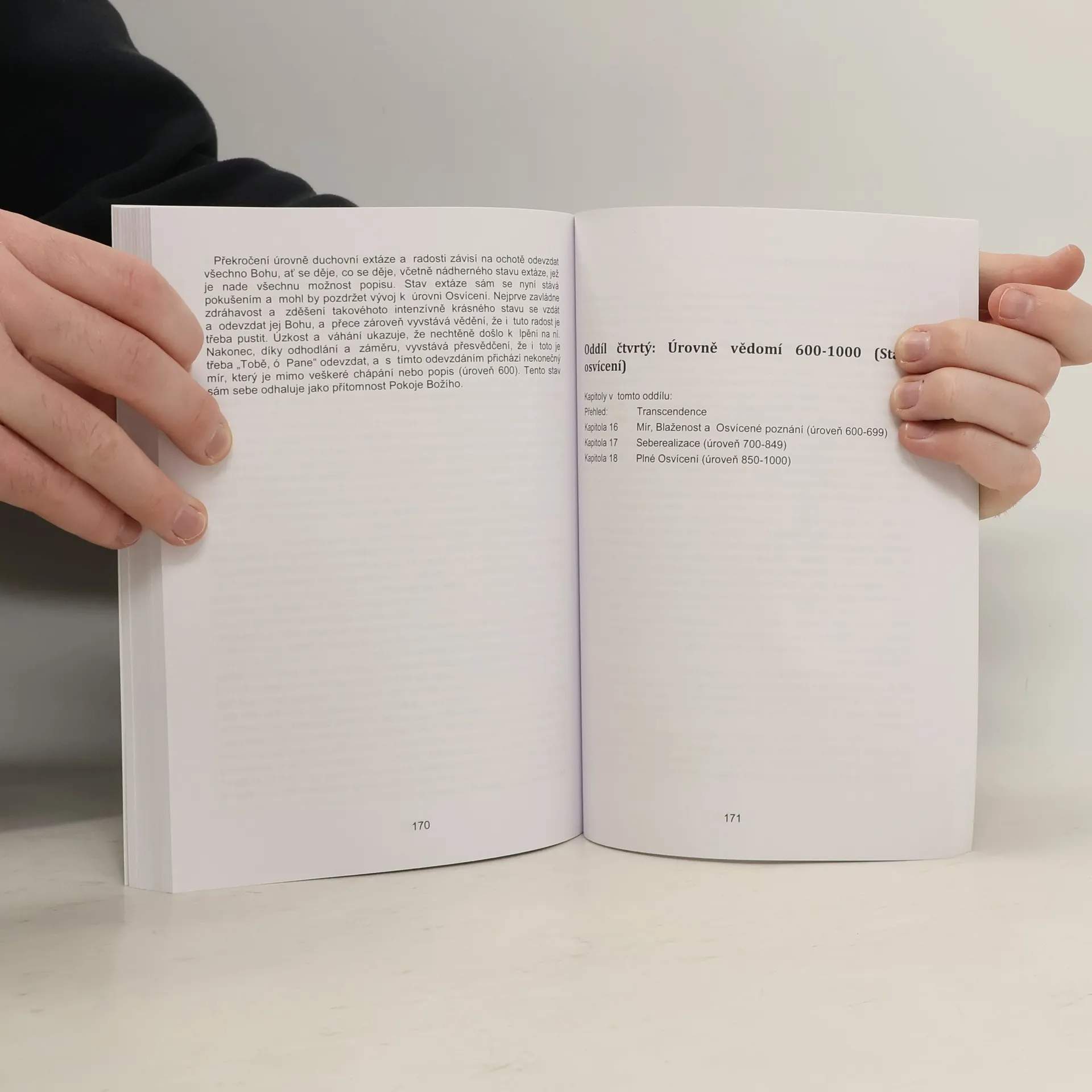 Lidské vědomí se může nacházet na různě vysokých úrovních. Dr. D. Hawkins, který zažíval pokročilé stavy vědomí již od dětství a pojmenoval je podle subjektivních prožitků, které na každém stupni převládají, a podle energie jejich pole jim přiřadil číselné hodnoty od jedné do tisíce (kde 1000 označuje, stav nejvyšších avatarů, Krišny, Zarathuštry, Buddhy a Ježíše Krista). Popisuje, jakým způsobem se na různých stupních vědomí chová lidské ego a jak se projevují jeho přirozená omezení. Dává praktické rady, jak můžeme na jednotlivých úrovních překonat s nimi související bloky, a tak každou z nich postupně transcendovat a připravovat se na pokročilé stavy vedoucí až k Osvícení. Kniha tedy není jen analýzou, ale především praktickou příručkou.