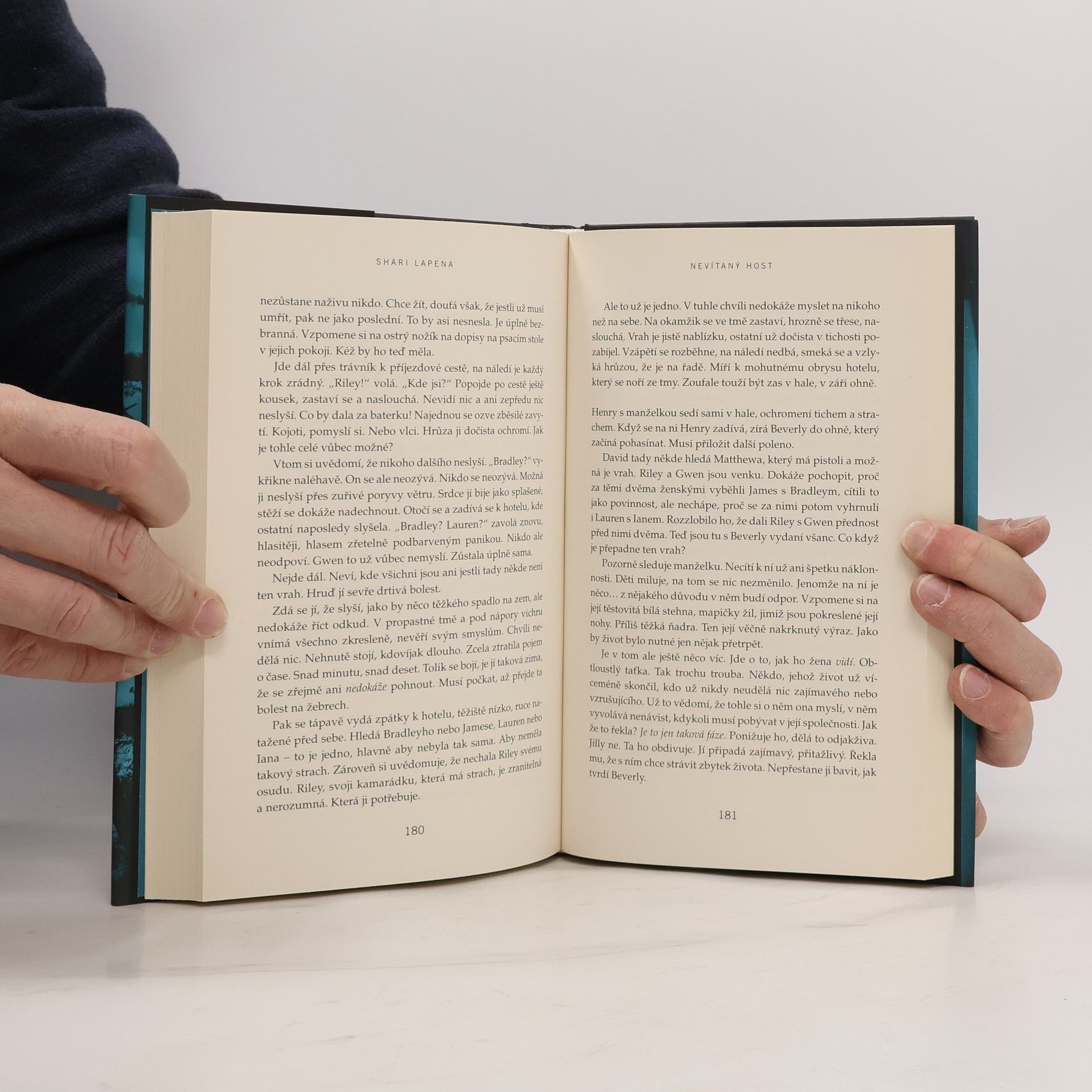 Do odlehlého venkovského hotelu přijíždí na zimní víkend několik hostů: Gwen a její kamarádka Riley, páry Ian a Lauren, Matthew a Dana, Beverly a Henry, proslulý obhájce David a staropanenská spisovatelka Candice. Poté co dorazí, udeří sněhová bouře, která odstřihne hotel od elektřiny i veškerého kontaktu s vnějším světem. A hned první noc dojde k tragické nehodě: Dana spadne ze schodů a zabije se. Byl to ale nezaviněný pád? Atmosféra houstne, baterie mobilů se pomalu vybíjejí a nedůvěra mezi hosty přechází v paranoiu – další smrt na sebe totiž nenechá dlouho čekat, a tentokrát už je to nepochybně vražda... Inspirace klasickými detektivkami, plíživé sílící napětí a hororové vyústění – Shari Lapena ani tentokrát neušetří čtenáře šokujícího odhalení, stejně nečekaného, jaký přinesly závěrečné zvraty v jejích předchozích psychothrillerech Manželé odvedle a Někdo cizí v domě