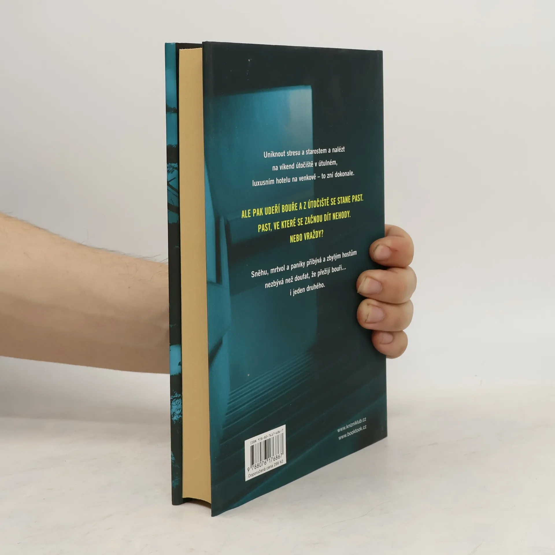 Do odlehlého venkovského hotelu přijíždí na zimní víkend několik hostů: Gwen a její kamarádka Riley, páry Ian a Lauren, Matthew a Dana, Beverly a Henry, proslulý obhájce David a staropanenská spisovatelka Candice. Poté co dorazí, udeří sněhová bouře, která odstřihne hotel od elektřiny i veškerého kontaktu s vnějším světem. A hned první noc dojde k tragické nehodě: Dana spadne ze schodů a zabije se. Byl to ale nezaviněný pád? Atmosféra houstne, baterie mobilů se pomalu vybíjejí a nedůvěra mezi hosty přechází v paranoiu – další smrt na sebe totiž nenechá dlouho čekat, a tentokrát už je to nepochybně vražda... Inspirace klasickými detektivkami, plíživé sílící napětí a hororové vyústění – Shari Lapena ani tentokrát neušetří čtenáře šokujícího odhalení, stejně nečekaného, jaký přinesly závěrečné zvraty v jejích předchozích psychothrillerech Manželé odvedle a Někdo cizí v domě
