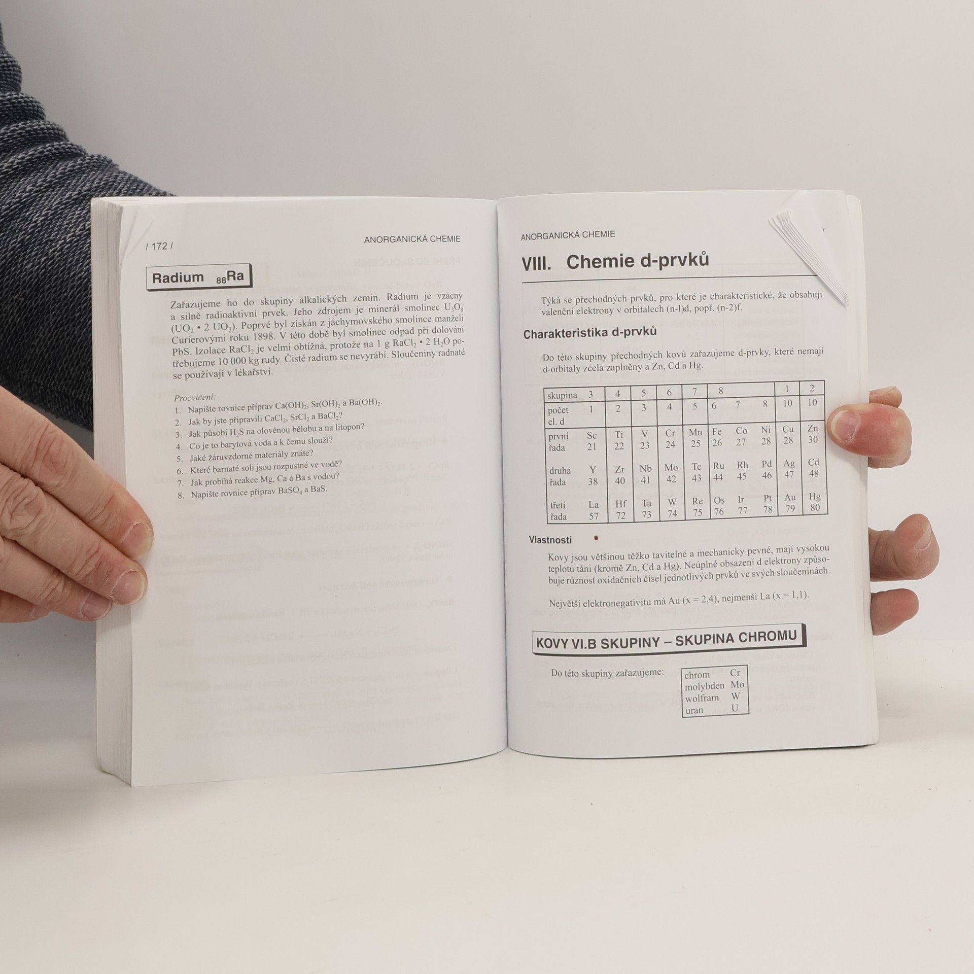 Základy obecné a anorganické chemie jsou předkládány stručně, s důrazem na systematičnost výkladu. Učební text jednotlivých kapitol je ukončen kontrolními otázkami k procvičení učiva. Užitý styl výkladu vychází z pedagogické praxe, obsahuje jen nejdůležitější základní poznatky a podstatná fakta. Učebnice je určena ke studiu chemie na gymnáziích, středních odborných školách, lze ji použít při přípravě k maturitě a na přijímací zkoušky z chemie na VŠ (obory chemické, biologické, ekologické, lékařství atd.).