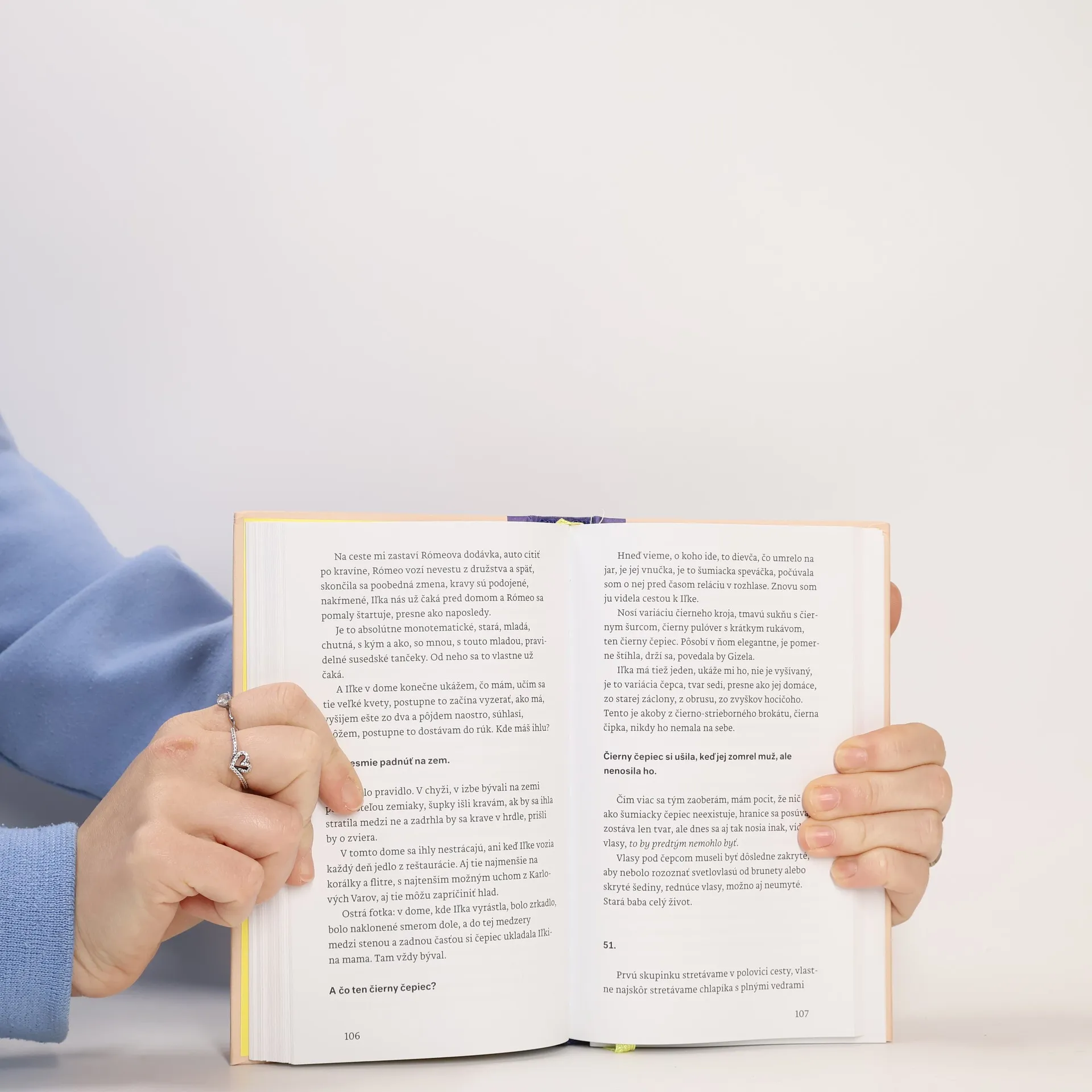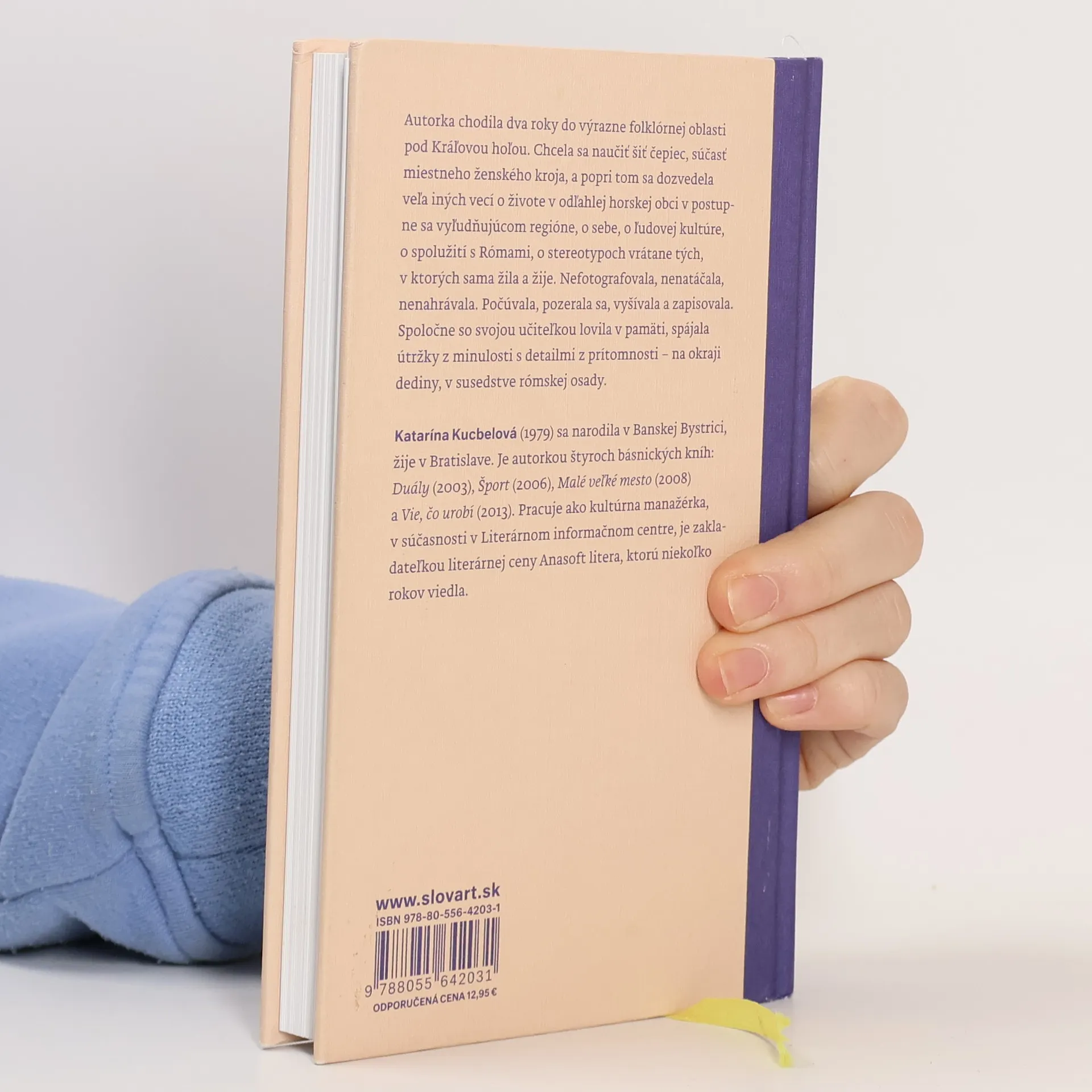 Autorka tejto knihy chodila dva roky do výrazne folklórnej oblasti pod Kráľovou hoľou. Chcela sa naučiť šiť čepiec, súčasť miestneho ženského kroja a popri tom sa dozvedela veľa iných vecí o živote v odľahlej horskej obci v postupne sa vyľudňujúcom regióne, o sebe, o ľudovej kultúre, o spolužití s Rómami, o stereotypoch, vrátane tých, v ktorých sama žila a žije. Nefotografovala, nenatáčala, nenahrávala. Počúvala, pozerala sa, vyšívala a zapisovala. Spoločne so svojou učiteľkou lovila v pamäti, spájala útržky z minulosti s detailmi z prítomnosti, na okraji dediny, v susedstve rómskej osady.