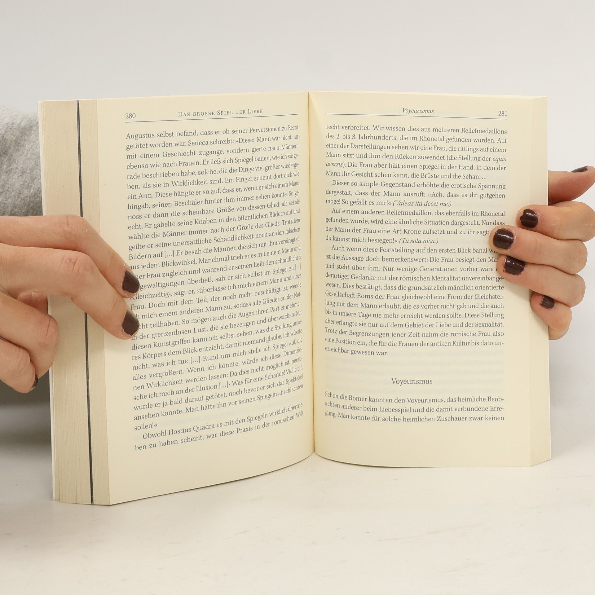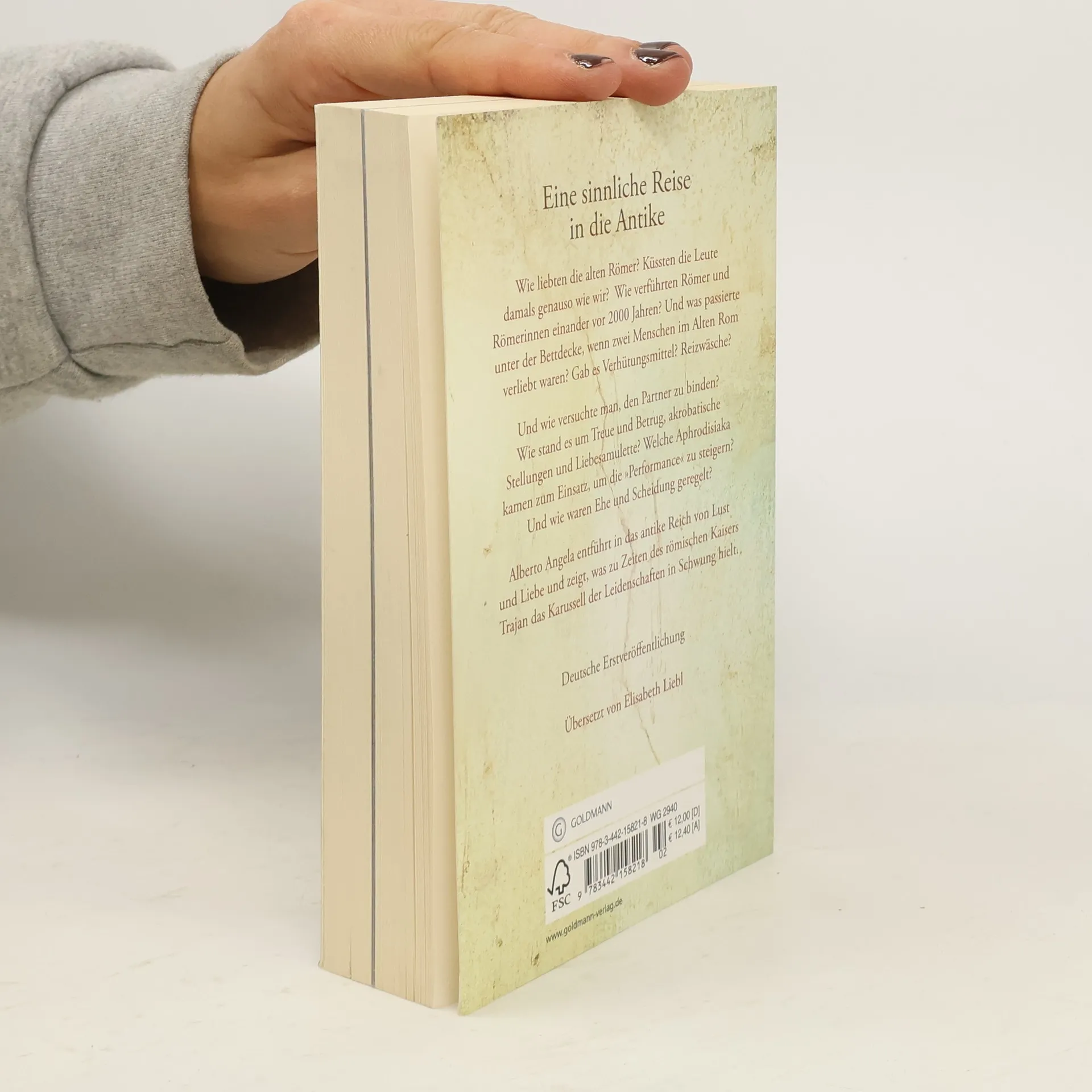 Wie liebten die alten Römer? Küssten die Leute damals genauso wie wir? Wie verführten Römer und Römerinnen einander vor 2000 Jahren? Und was passierte unter der Bettdecke, wenn zwei Menschen im Alten Rom verliebt waren? Gab es Verhütungsmittel? Reizwäsche? Und wie versuchte man, den Partner zu binden? Wie stand es um Treue und Betrug, akrobatische Stellungen und Liebesamulette? Welche Aphrodisiaka kamen zum Einsatz, um die „Performance“ zu steigern? Und wie waren Ehe und Scheidung geregelt? Alberto Angela entführt in das antike Reich von Lust und Liebe und zeigt, was zu Zeiten des römischen Kaisers Trajan das Karussell der Leidenschaften in Schwung hielt. Ausstattung: durchgehend s/w-Abb. + 16 S. Farbbildteil