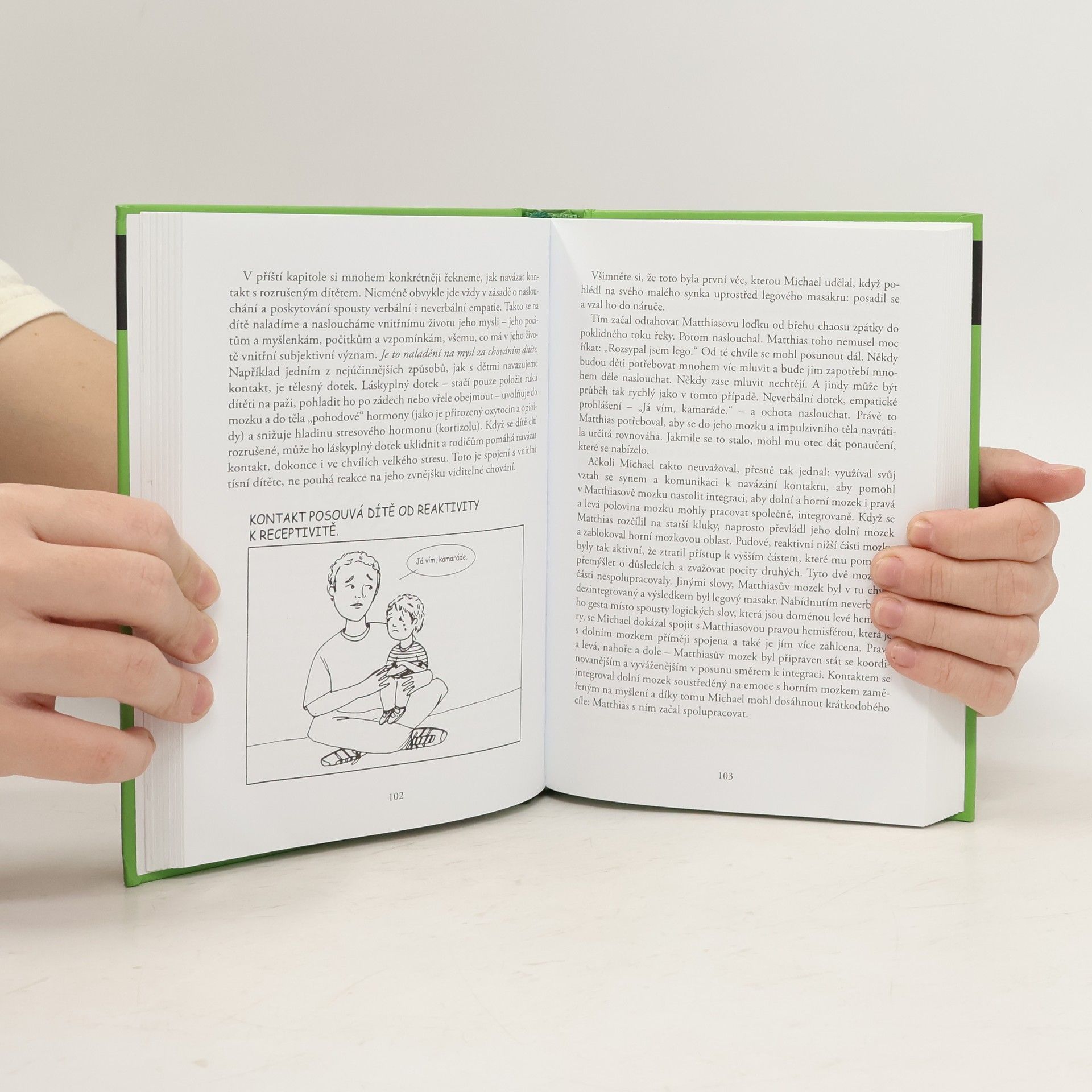 Záchvaty pláče či vzteku, spory nad domácími úkoly, hádky mezi sourozenci... podobné vypjaté situace obtížně zvládají nejen děti, ale i rodiče. Daniel Siegel a Tina Payneová-Brysonová v této knize poskytují rodičům a vychovatelům cenné rady, jak podobné okamžiky nejen přežít, ale též s nadhledem a výchovným záměrem zvládat. Autoři nabízejí výchovný přístup založený na nejnovějších poznatcích o vývoji mozku a konkrétní návod, jak klidně a laskavě navázat s dítětem kontakt, konstruktivně s ním komunikovat, ale zároveň mu jasně a důsledně vymezovat hranice. Příběhy ze života, vtipné ilustrace a přehledná shrnutí poskytují praktické rady, jak pracovat s vyvíjejícím se mozkem dítěte, klidně řešit konflikty a na základě této výchovné filozofie vést novou generaci ke šťastnému a spokojenému životu.