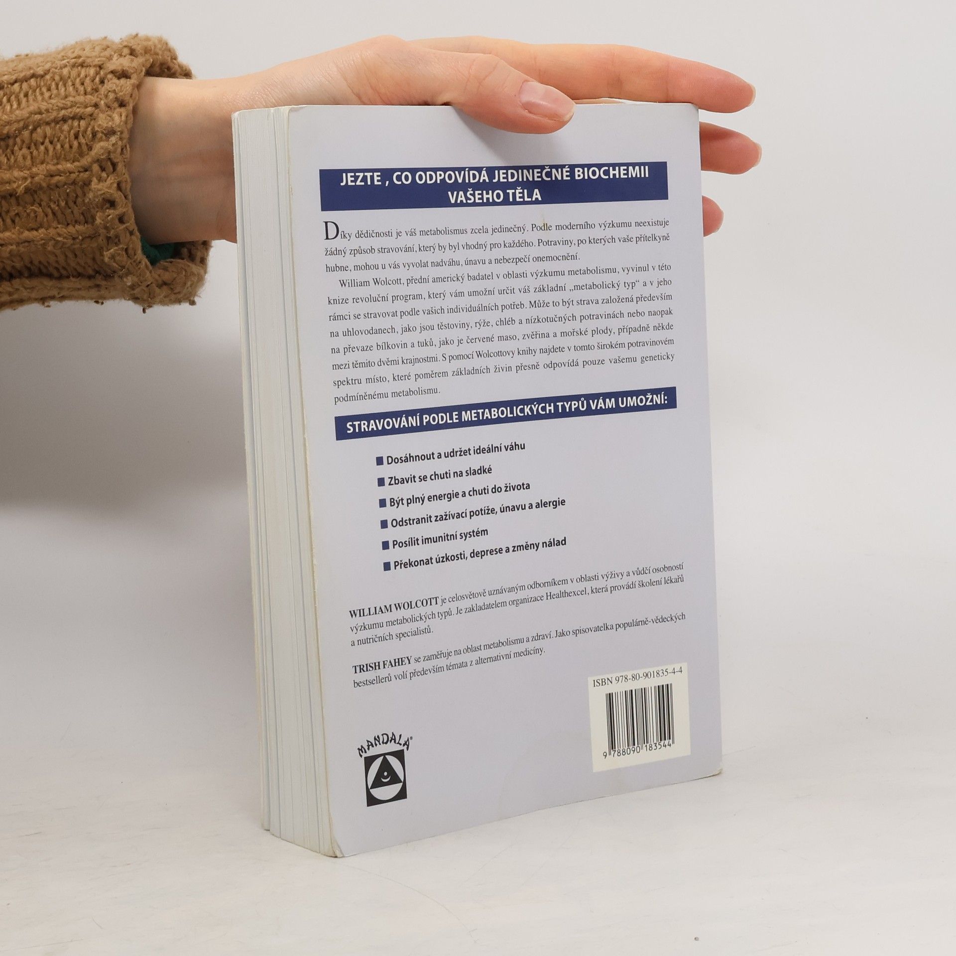 William Wolcott, přední americký badatel v oblasti výzkumu metabolismu, vyšel z předpokladu, že určitá strava, která někomu prospívá, u někoho může vyvolat onemocnění. A v této knize vyvinul revoluční program, který čtenářům umožní určit jejich základní „metabolický typ“, na kterém závisí způsob našeho stravování. Může to být buď strava založená především na uhlovodanech, jako jsou těstoviny, rýže, chléb a nízkotučných potravinách nebo naopak na převaze bílkovin a tuků, jako je červené maso, zvěřina a mořské plody, případně někde mezi těmito dvěmi krajnostmi. S pomocí Wolcottovy knihy čtenáři najdou v tomto širokém potravinovém spektru místo, které poměrem základních živin přesně odpovídá pouze jejich geneticky podmíněnému metabolismu. Tento způsob stravování pak čtenářům umožní mimo jiné dosáhnout a udržet ideální váhu, předejít nemocem a z dosavadních nemocí se uzdravit.