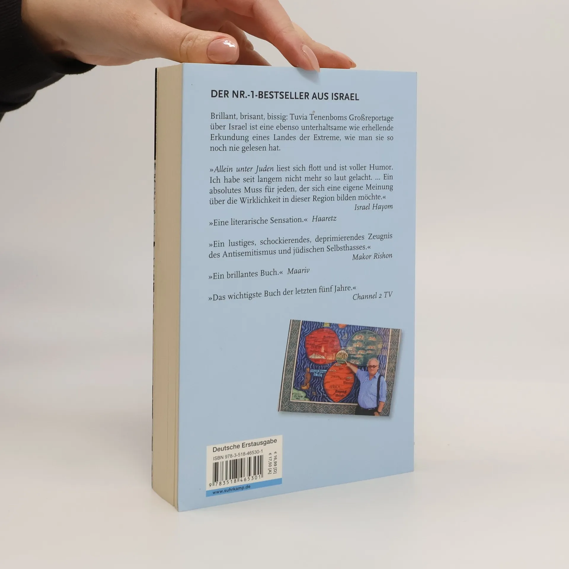 Ende 2012 erschien Tuvia Tenenboms furioser Reisebericht Allein unter Deutschen, der hier heftig diskutiert wurde und monatelang auf der Bestsellerliste stand. Nach seiner Deutschland-Tour hat sich Tenenbom 2013 auf Entdeckungsreise durch Israel begeben. Dreißig Jahre nachdem er seine Heimat in Richtung USA verlassen hat, kehrte er, der Sohn eines Rabbiners, zurück, um sich ein eigenes Bild davon zu machen, wie sich die kulturelle und politische Identität Israels verändert hat. Dafür ist er wieder kreuz und quer durchs Land gereist: vom Gazastreifen bis zu den Golanhöhen, von Eilat bis zu den Hisbollah-Stellungen im Norden. Und schon bald erkennt er, dass man, um dieses Land wirklich zu verstehen, mit allen sprechen muss: mit Ultraorthodoxen und Atheisten, mit Fundamentalisten jeglicher Couleur, mit Kibbuzniks und Siedlern, Rabbis und Imamen, mit Mystikern und Intellektuellen, Militärs und Geheimagenten, mit israelischen Prominenten und palästinensischen Politikern, mit Journalisten und NGO-Aktivisten u. v. m. Das Ergebnis dieser nicht immer ganz konfliktfrei verlaufenen Begegnungen ist eine ebenso unterhaltsame wie erhellende Erkundung eines Landes der Extreme, wie man sie so noch nie gelesen hat.