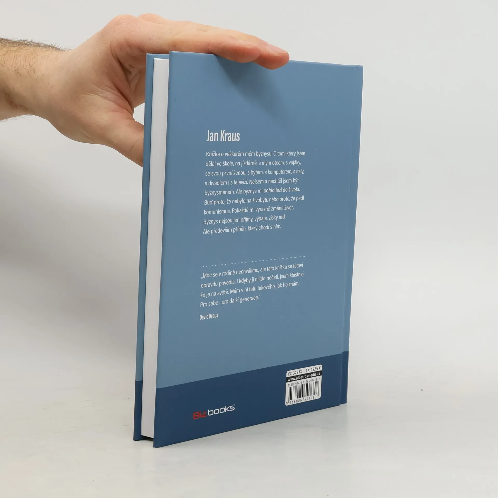 Knížka o veškerém mém byznysu. O tom, který jsem dělal ve škole, na jízdárně, s mým otcem, s vojáky, s mojí první ženou, s bytem, s komputerem, s Italy, s divadlem i s televizí. Nejsem a nechtěl jsem být byznysmenem. Ale byznys mi pořád lezl do života. Buď proto, že nebylo na živobytí, nebo proto, že padl komunismus. Pokaždé mi výrazně změnil život. Byznys nejsou jen příjmy, výdaje, zisky atd. Ale především příběh, který chodí s ním.