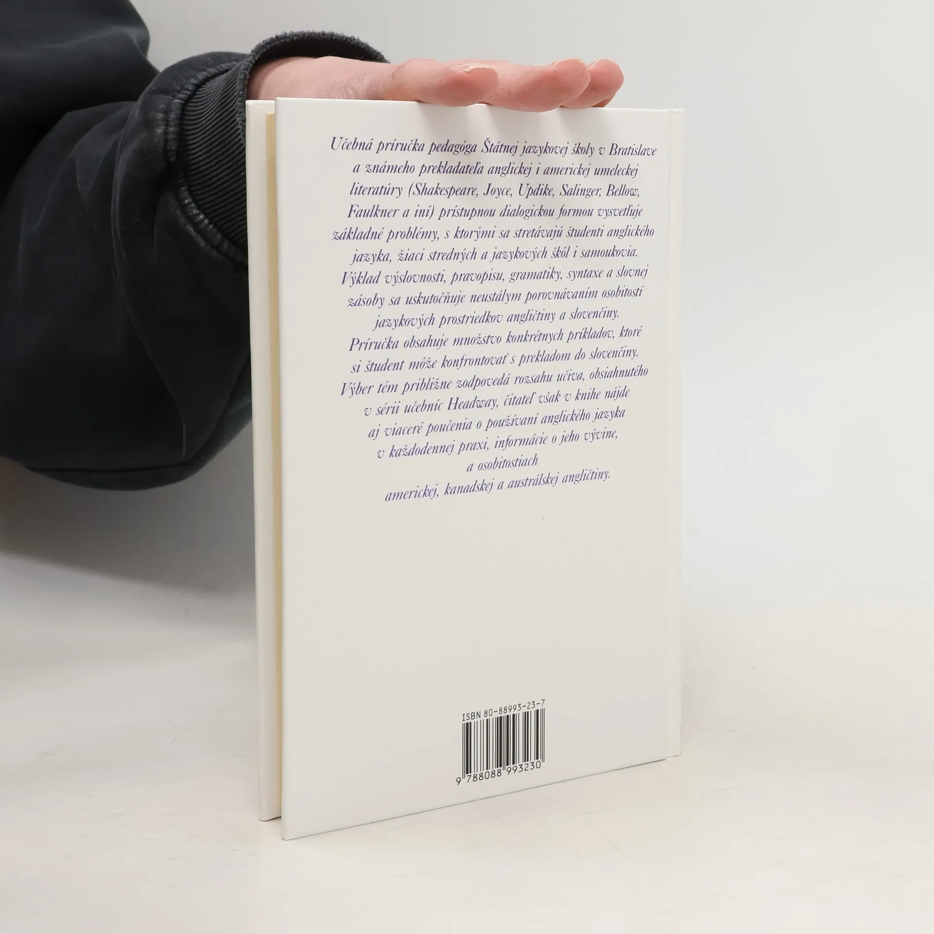 Prečo je to v angličtine tak? Vysvetlenie základných problémov s ktorými sa stretávajú študenti anglického jazyka, žiaci stredných a jazykových škôl i samoukovia. Výklad výslovnosti, pravopisu, gramatiky, syntaxe a slovnej zásoby sa uskutočňuje neustálym porovnávaním osobitostí jazykových prostriedkov angličtiny a slovenčiny. Autor je známym prekladateľom anglickej a americkej literatúry (Shakespeare, Joyce, Updike, Salinger, Bellow, Faulkner a iní).