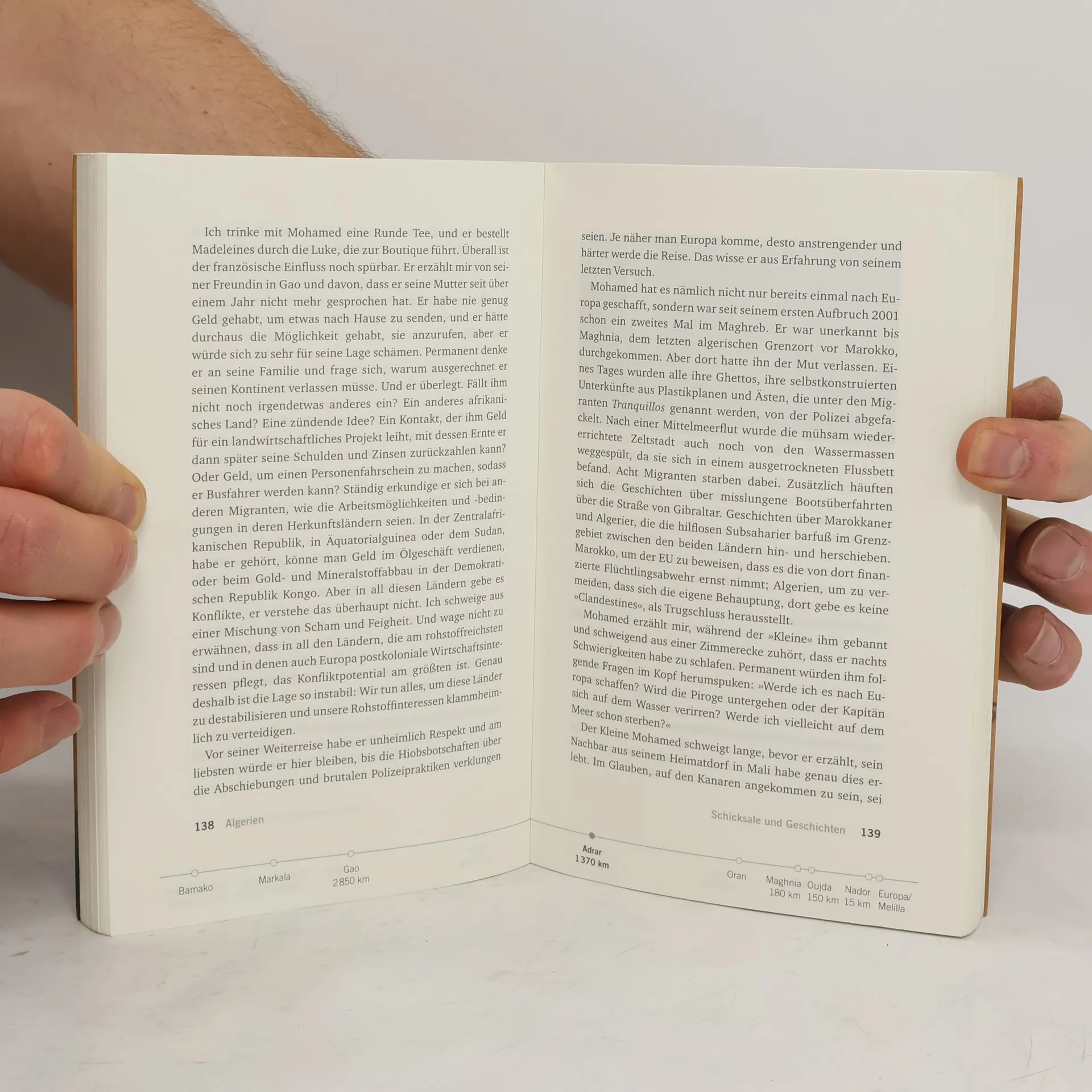 Gefangen in der Warteschleife vor Europa das ist das Schicksal tausender junger Afrikaner, die sich jedes Jahr auf den Weg zu uns machen. Miriam Faßbender hat zwei junge Männer auf diesem Weg begleitet, sie hat unter Flüchtenden gelebt und ihren Alltag kennengelernt: das Leben in den Ghettos, willkürliche Polizeirazzien, die Suche nach Essen und nach schlecht bezahlten Jobs, um die Weiterreise zu finanzieren. Sie erzählt von ihren Erfahrungen als Europäerin unter afrikanischen Migranten, als Privilegierte unter Menschen, die ihre Freiheiten nicht haben Erfahrungen, die so persönlich wie erschreckend, so anrührend wie brenzlig, so mutmachend wie niederschmetternd sind.