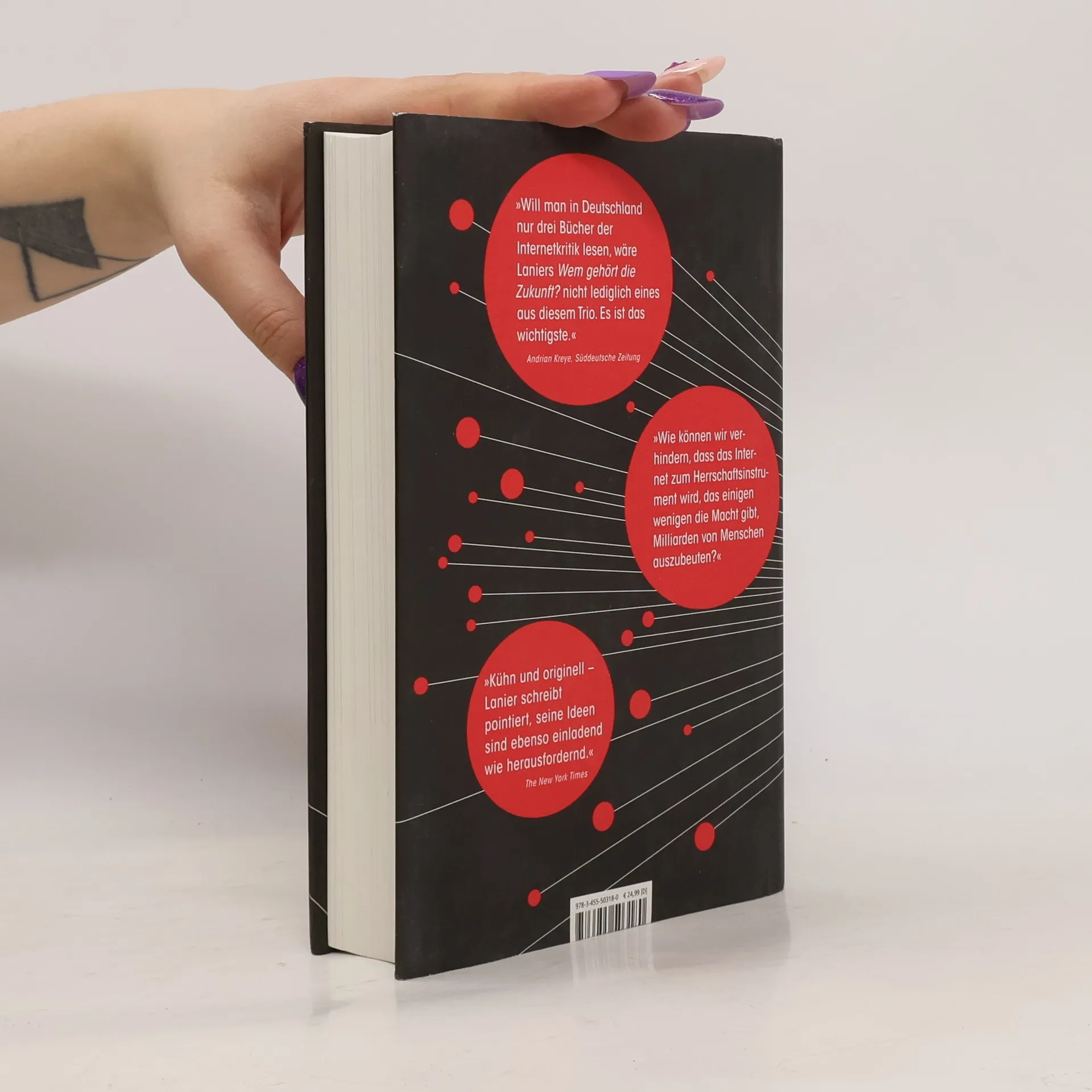 „Du bist nicht der Kunde der Internetkonzerne. Du bist ihr Produkt.“ Spätestens seit den Enthüllungen des Whistleblowers Edward Snowden ist klar: Die „schöne neue Welt“ nimmt Gestalt an, und es wird höchste Zeit, ihr etwas entgegenzusetzen. Internetpionier und Cyberguru Jaron Lanier liefert eine profunde Analyse der aktuellen Trends in der Netzwerkökonomie, die sich in Richtung Totalüberwachung und Ausbeutung der Massen bewegt. Der Bestseller aus den USA endlich auf Deutsch!