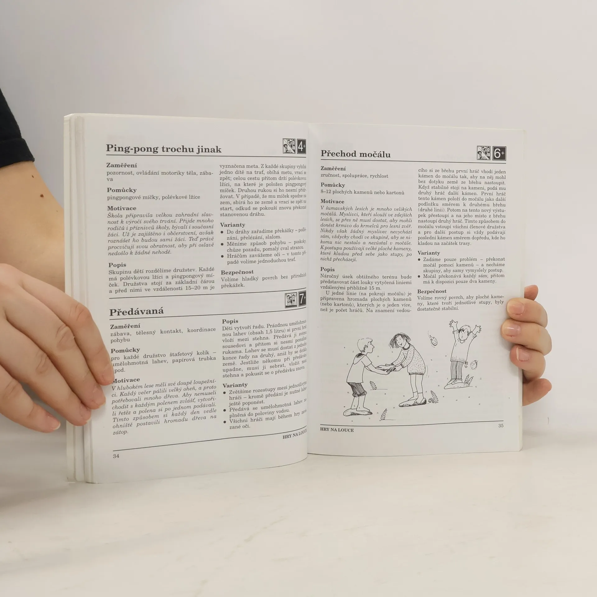 Nové i osvědčené hry a cvičení v přírodě pro děti ve věku 4 až 8 let. Náměty her jsou rozděleny podle prostředí, ve kterém se konají - hry na louce, v lese, v zimní přírodě, u potoka nebo rybníka. Hry jsou nejen zábavou, ale vedou děti ke spolupráci, slouží ke zlepšení vzájemné komunikace a ke zvýšení fyzické i psychické kondice. Kniha je určena především učitelkám mateřských škol a nižších ročníků základních škol, ale mohou ji využít i rodiče a vedoucí dětských skupin.