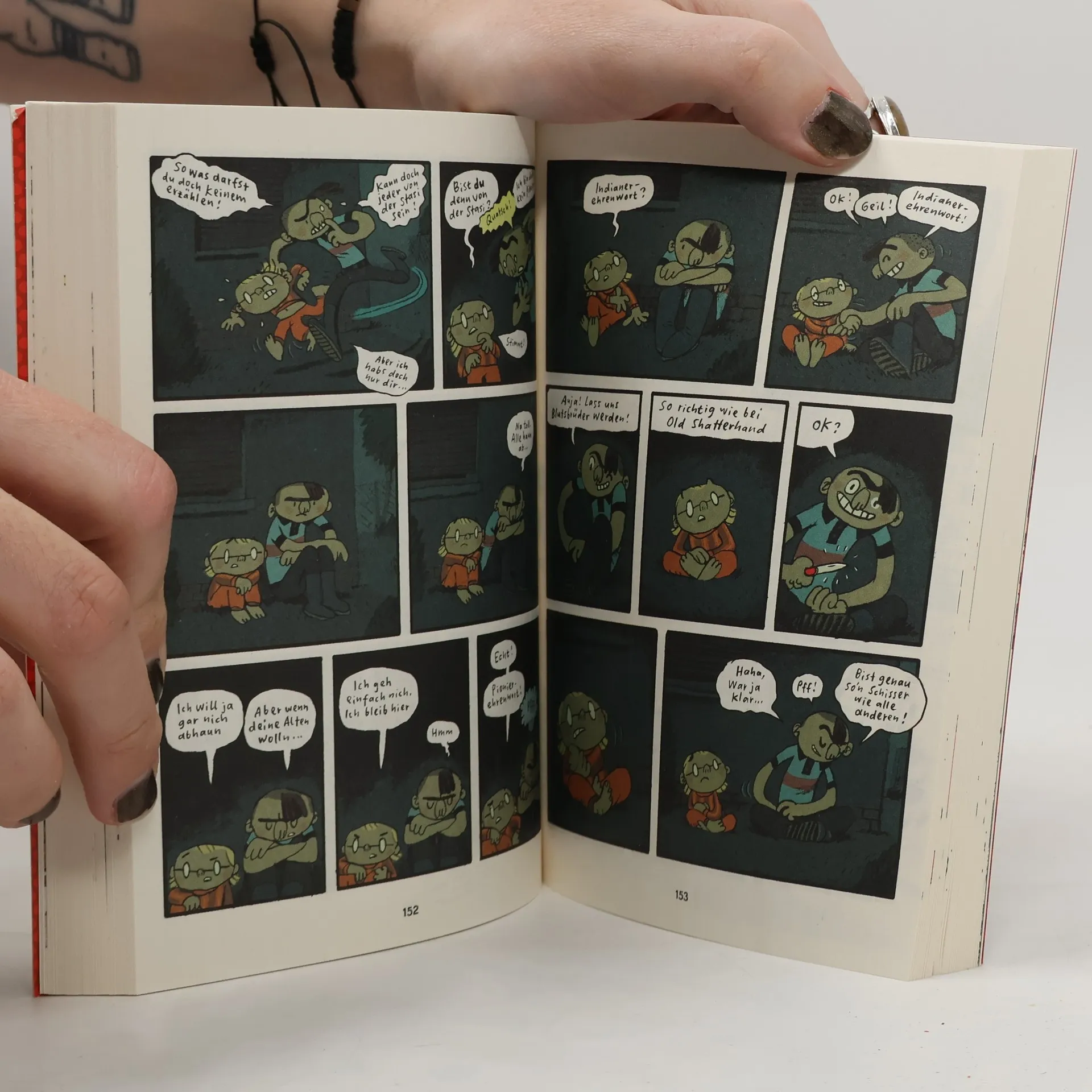 Ostberlin im Sommer 1989: Mirco Watzke steckt in der Klemme. Der sonst so vorbildliche Schüler der Klasse 7a hat Ärger mit den blöden FDJlern, und der Einzige, der ihm dabei helfen kann, ist ausgerechnet der unheimliche Neue aus der Parallelklasse… In „Kinderland“ erzählt Mawil von Freundschaft, Mut und Vertrauen, einer Kindheit zwischen Jungen Pionieren und Kirche, von „verschwundenen“ Vätern und heimlich belauschtem Getuschel übers „rübermachen“, von der „Angabe des Todes“ und einem Tischtennisturnier am Vorabend der Wende. Ein ebenso tiefgründiges wie rasant-unterhaltsames Buch, das anhand persönlicher Erinnerungen und sorgfältiger Recherche ein lebendiges Bild der letzten Tage der DDR zeichnet. Ausgezeichnet mit dem Max & Moritz-Preis als „Bester deutschsprachiger Comic“, und DER Besteller bei Reprodukt – jetzt im Taschenbuch für nur noch 9,95 EUR!