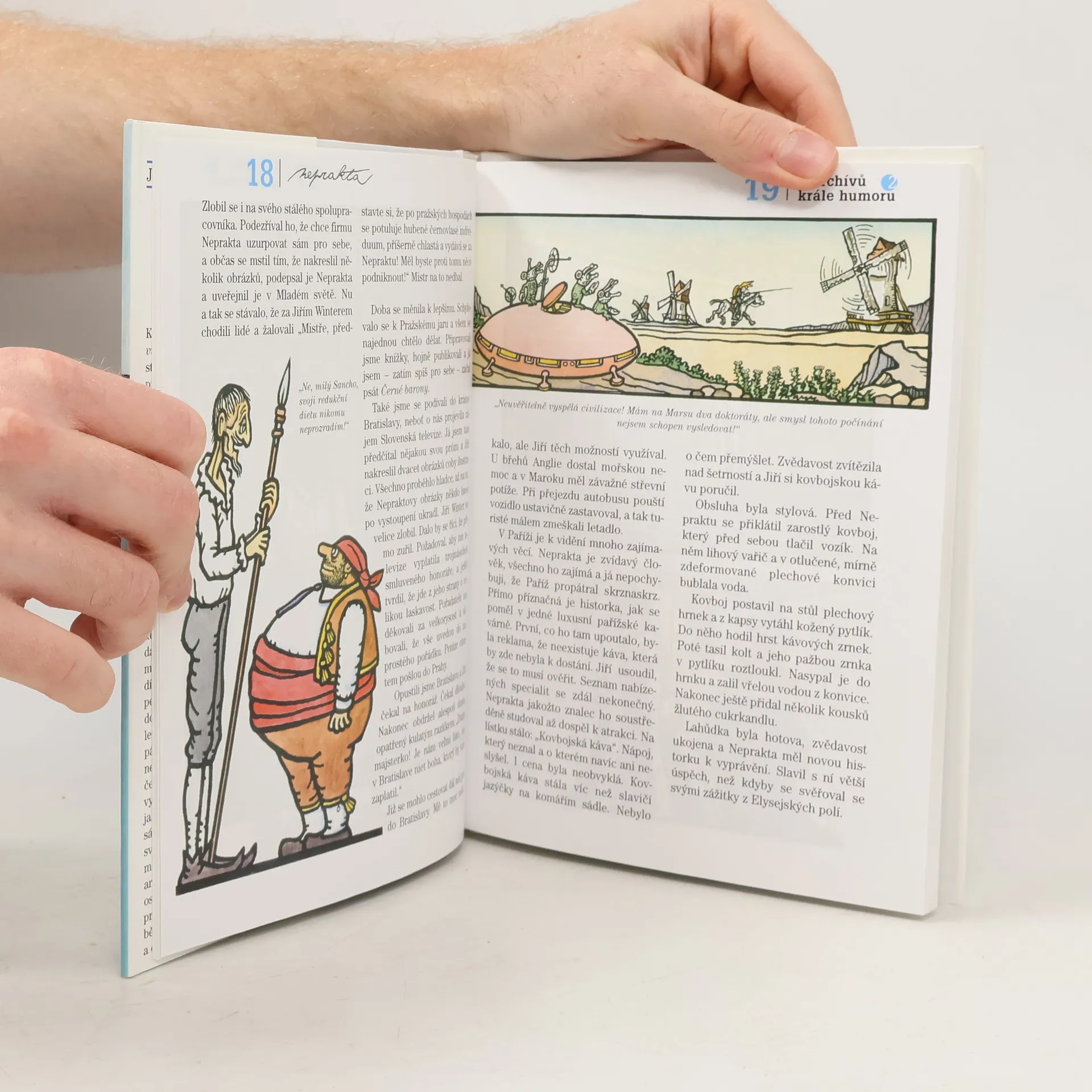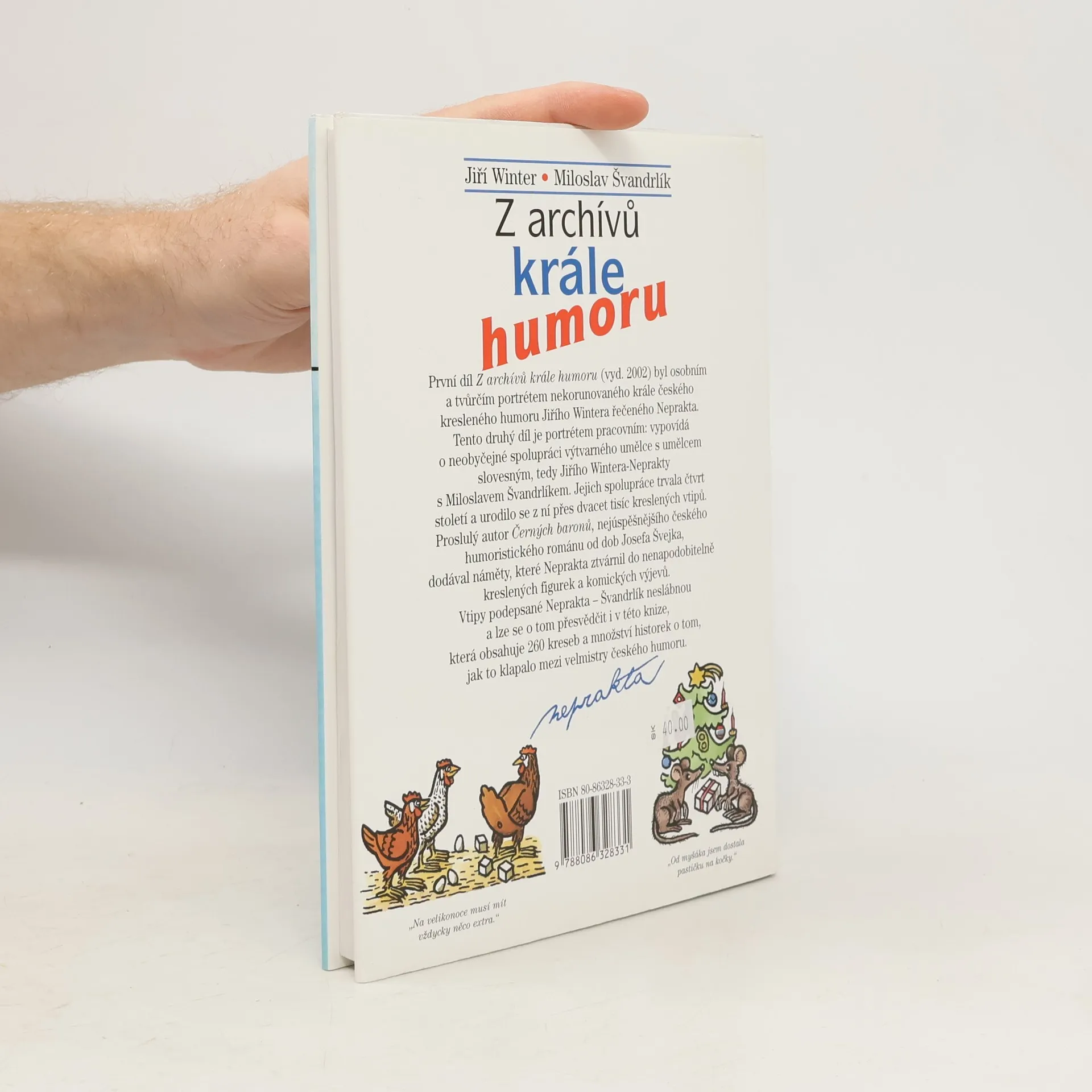 První sonda do archívů českého krále kresleného humoru se před rokem setkala s mimořádným čtenářským ohlasem. Potvrdila, že Nepraktovy karikatury a vtipy nejenže nestárnou, ale jsou nadčasové. Druhá sonda do archívů firmy Neprakta je svědectvím o její nejproduktivnější etapě, kdy Jiří Winter spolupracoval s Miloslavem Švandrlíkem. Proslulý autor Černých baronů nesměl tehdy publikovat a veškerou humoristickou invenci a sílu svého vtipu zhutnil do námětů, které Jiří Winter převáděl do svých kreseb. Neprakta-Švandrlík vytvořili spolu na dvě desetiletí výjimečnou dvojici, královský pár humoru. V tomto svazku vyprávějí o svém plodném soužití každý svým způsobem: M.Švandrlík slovem aj.Winter kresbou. Jejich dvojhlas je příjemnou a humornou výpovědí nejen o nich samotných, ale zároveň o době, která sice humoru nepřála, ale humor vydatně přál jí – a Neprakta se Švandrlíkem byli v jeho čele.