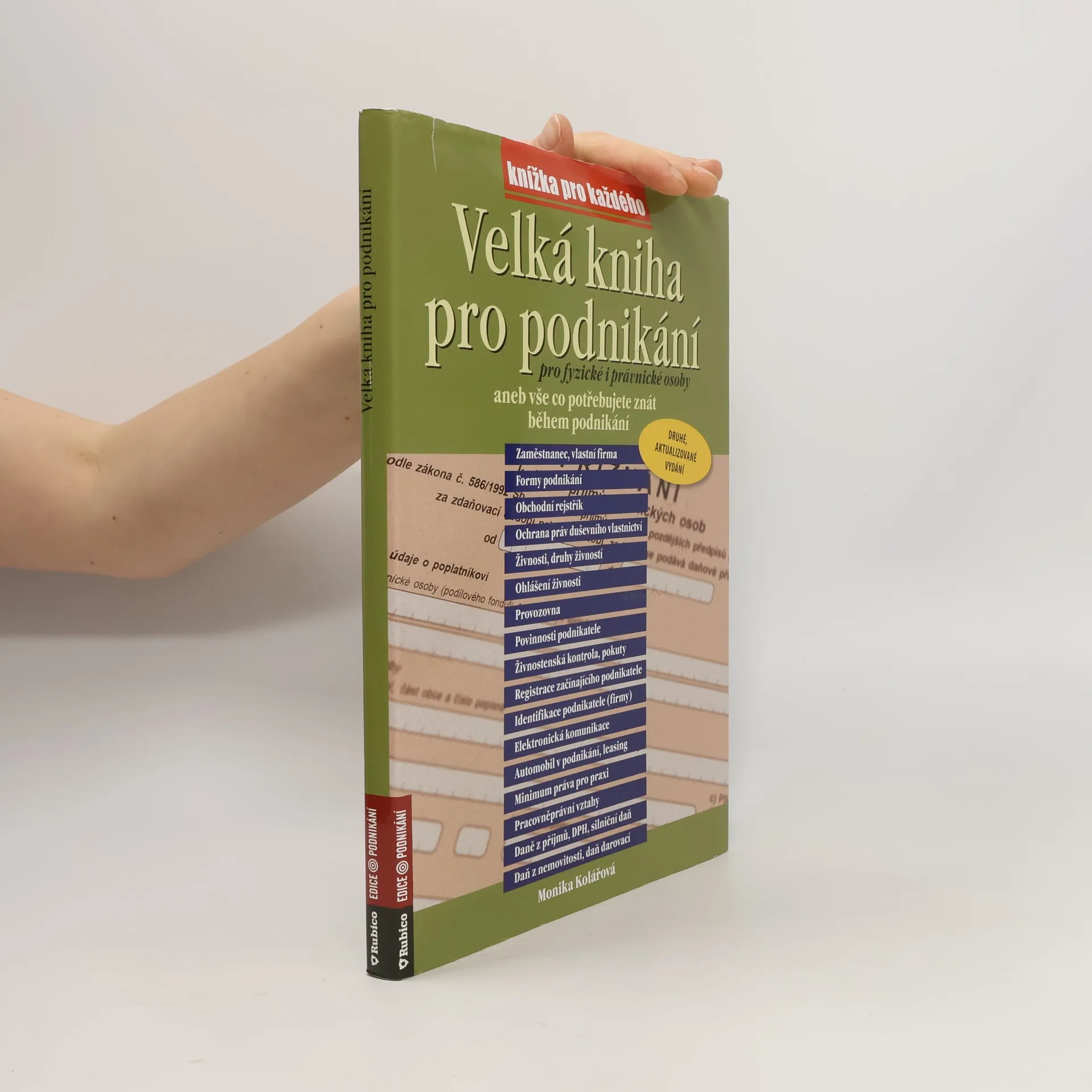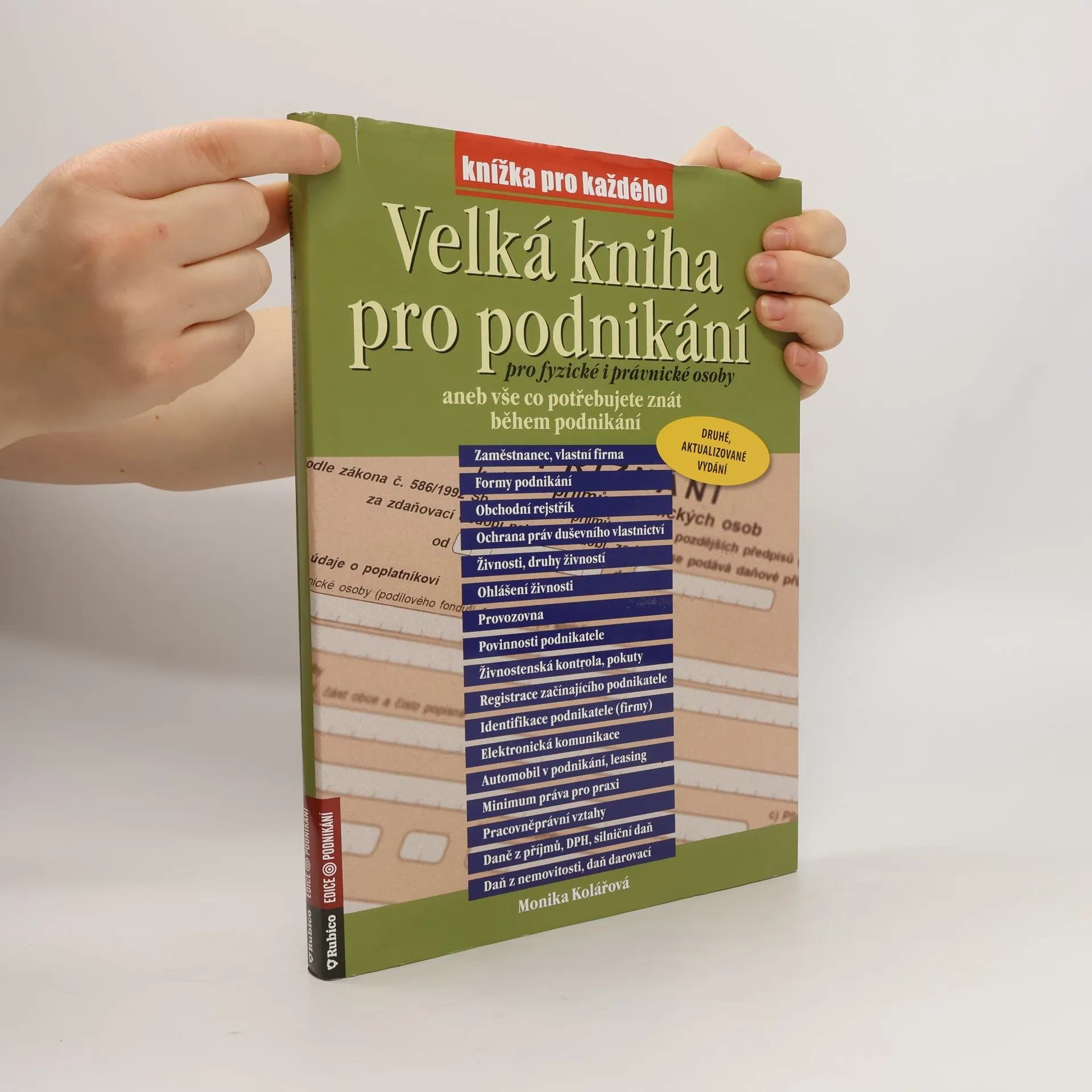 Velká kniha pro podnikání je jediná kniha na trhu, která zahrnuje vše, co drobný podnikatel potřebuje: - zahájení podnikání - registrace podnikatele - zdravotní a sociální pojištění - provozovna - podpora podnikání - uzavírání smluv - leasing - daně a poplatky - účetnictví, daňová evidence - kontroly a sankce - zaměstnanci - odpovědnost a pojištění podnikatelů - požární ochrana, bezpečnost práce a mnoho dalšího.