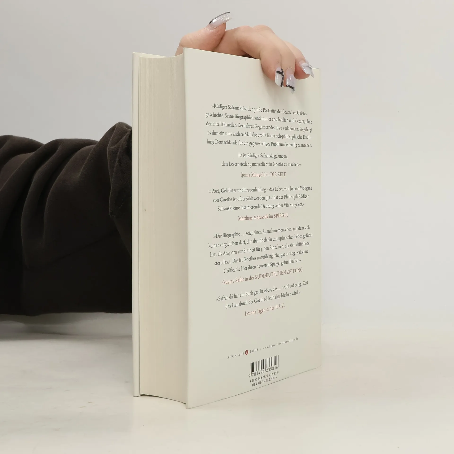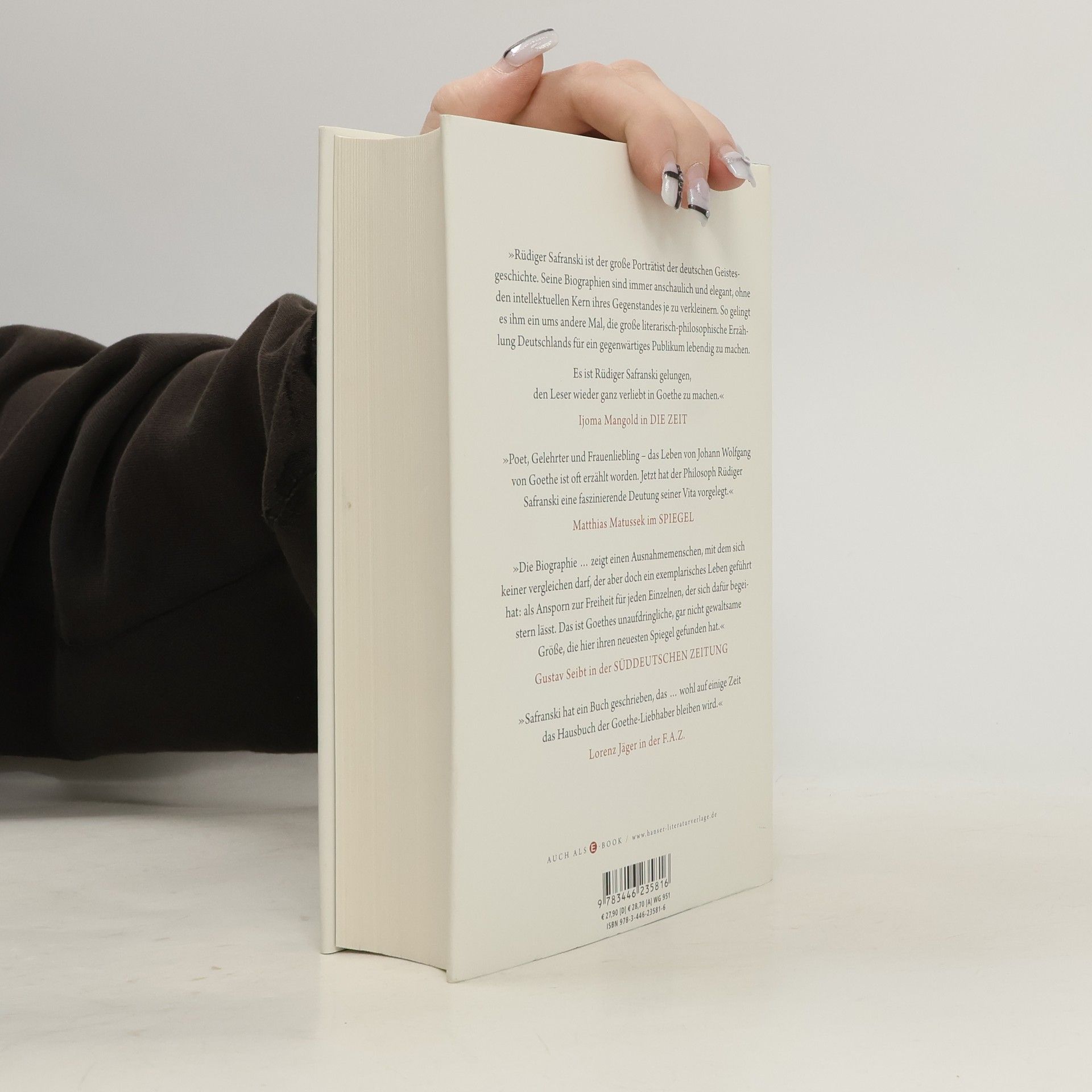 Das Goethe-Buch für unsere Zeit: Rüdiger Safranski nähert sich dem letzten Universalgenie aus den primären Quellen – Werke, Briefe, Tagebücher, Gespräche, Aufzeichnungen von Zeitgenossen. So wird Goethe ungewohnt lebendig: Ein junger Mann aus gutem Hause, dem Studentenleben zugetan und dauerverliebt, wird Bestsellerautor, bekommt eine gutdotierte Stellung, dilettiert in Naturforschungen, flüchtet nach Italien, lebt in wilder Ehe – und bei alledem schreibt er seine unvergesslichen Werke. Doch er wollte noch mehr: Das Leben selbst sollte zum Kunstwerk werden. Safranskis souverän geschriebenes Buch macht uns zu Zeitgenossen dieses Menschen und schildert eindringlich, wie Goethe sich zu Goethe gemacht hat.