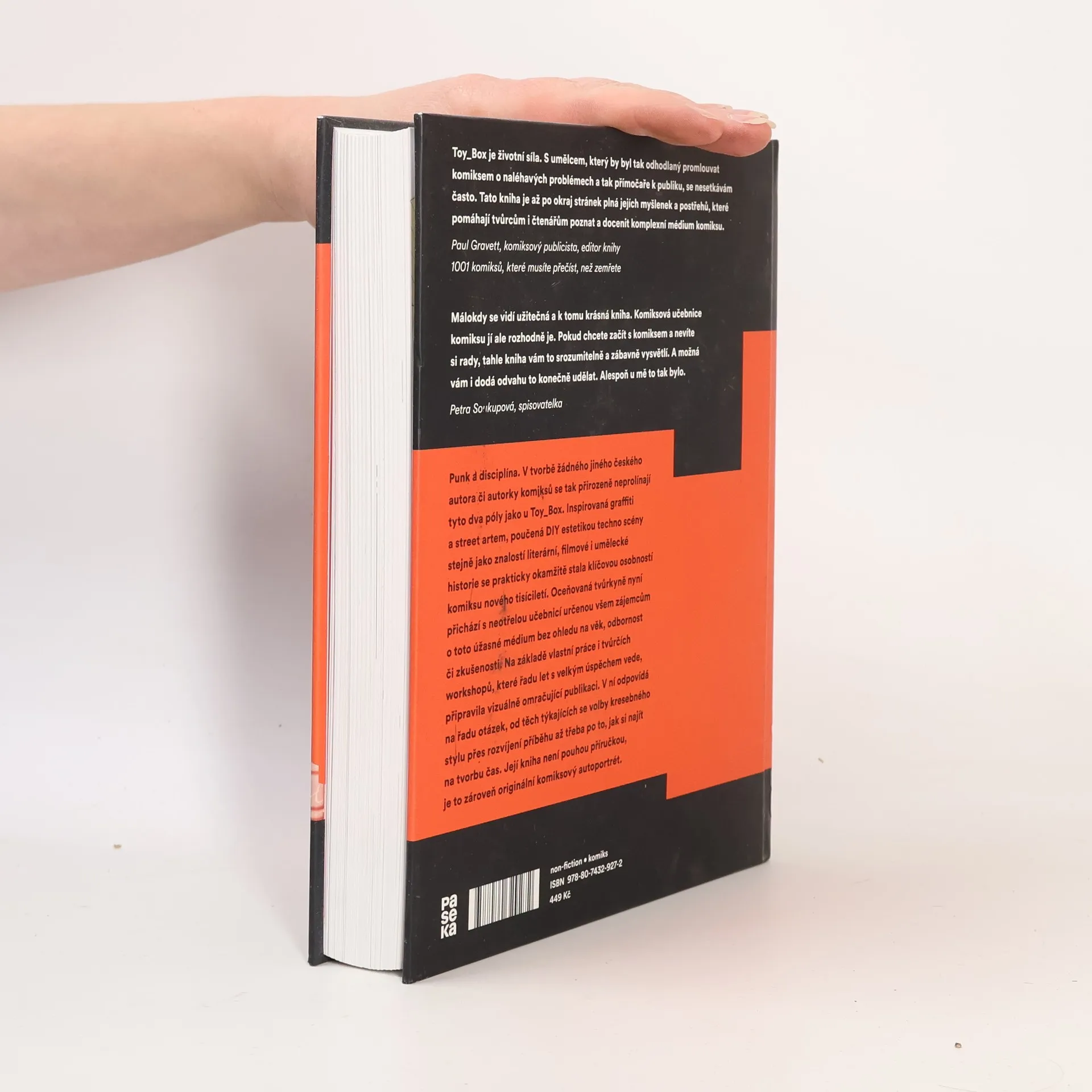 Punk a disciplína. V tvorbě žádného jiného českého autora či autorky komiksů se tak přirozeně neprolínají tyto dva póly jako u Toy_Box. Inspirovaná graffiti a street artem, poučená DIY estetikou techno scény stjně jako znalostí literární, filmové i umělecké historie, se prakticky okamžitě stala klíčovou osobností komiksu nového tisíciletí. Oceňovaná tvůrkyně nyní přichází s neotřelou učebnicí určenou všem zájemcům o toto úžasné médium bez ohledu na věk, odbornost či zkušenosti. Na základě vlastní práce i tvůrčích workshopů, které řadu let s velkým úspěchem vede, připravila vizuálně omračující publikaci. V ní odpovídá na řadu otázek, od těch týkajících se volby kresebného stylu přes rozvíjení příběhu až třeba po to, jak si najít na tvorbu čas. Její kniha není pouhou příručkou, je zároveň originální komiksový autoportrét.