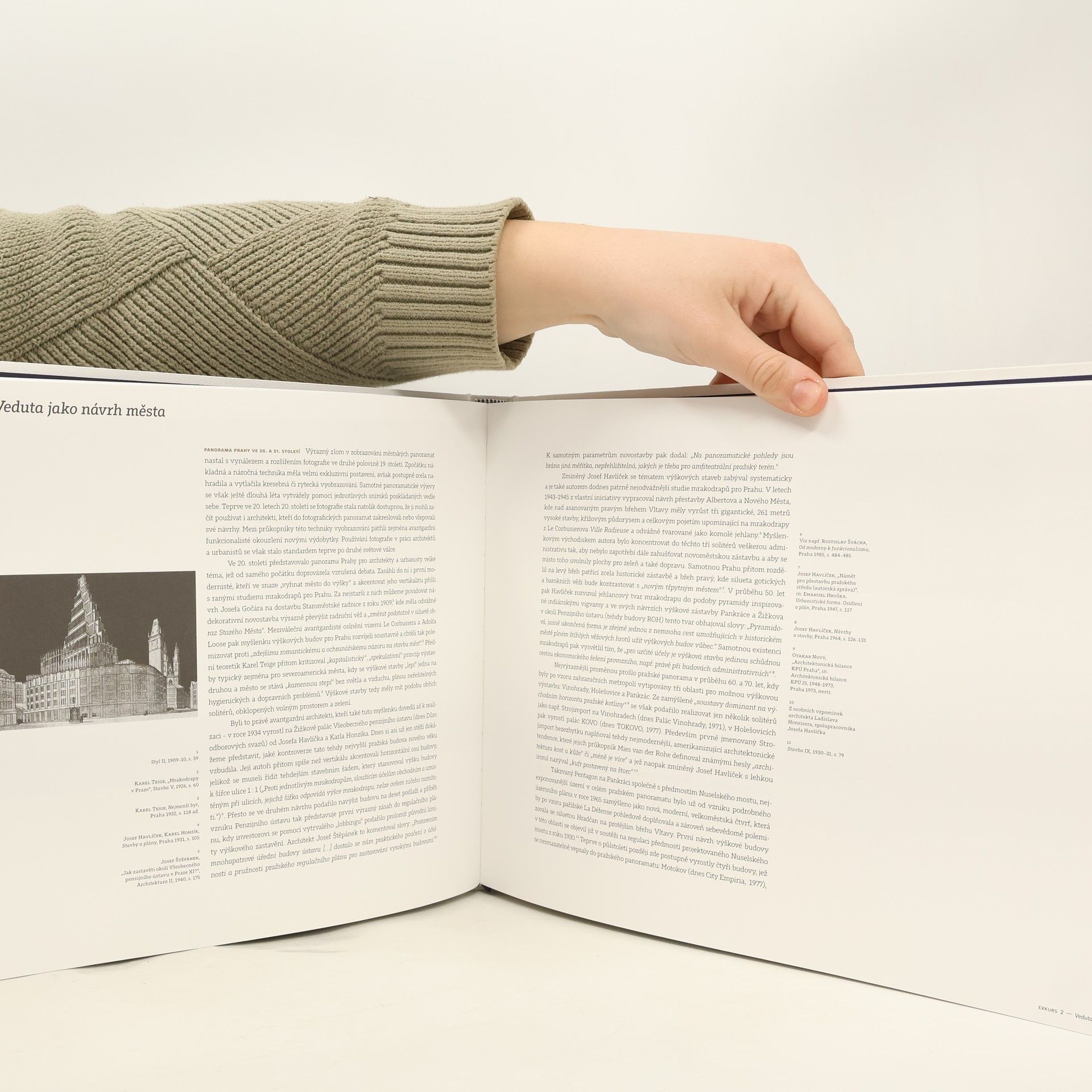 Kniha Pražské veduty / jak se dívat na (historickou) městskou krajinu zkoumá, jak bylo město zobrazováno v různých obdobích, a ukazuje, jak lze číst jeho kompozici prostřednictvím vedut. Publikace se zaměřuje na vývoj vnímání Prahy za více než pět století, s důrazem na posledních padesát let a výhled do budoucna. Vydává ji Institut plánování a rozvoje Praha jako příspěvek k debatě o výškové kompozici města, která je stále aktuálnější. Kniha je rozdělena do tří kapitol a čtyř obrazových exkurzů. První kapitola se věnuje Praze jakožto městu zapsanému na seznamu UNESCO a jeho historické kompozici. Druhá kapitola analyzuje, jak lze číst dnešní metropoli na základě principů, které formovaly její vývoj. Třetí kapitola se zaměřuje na proměnu historické městské krajiny s důrazem na vertikální rozměr zástavby, zejména v 20. století. Obsahuje také "Veduty k doplnění", které jsou součástí nového návrhu Metropolitního plánu. Následují čtyři obrazové exkurzy zahrnující historické veduty a architektonické návrhy z 20. století. Klíčovým prvkem knihy je unikátní soubor panoramatických vedut fotografky Ester Havlové, který doplňuje regulaci výšek podle Metropolitního plánu a naznačuje možnosti dalšího rozvoje kompozice města. Grafickou podobu publikace vytvořila Kateřina Koňata Dolejšová.
